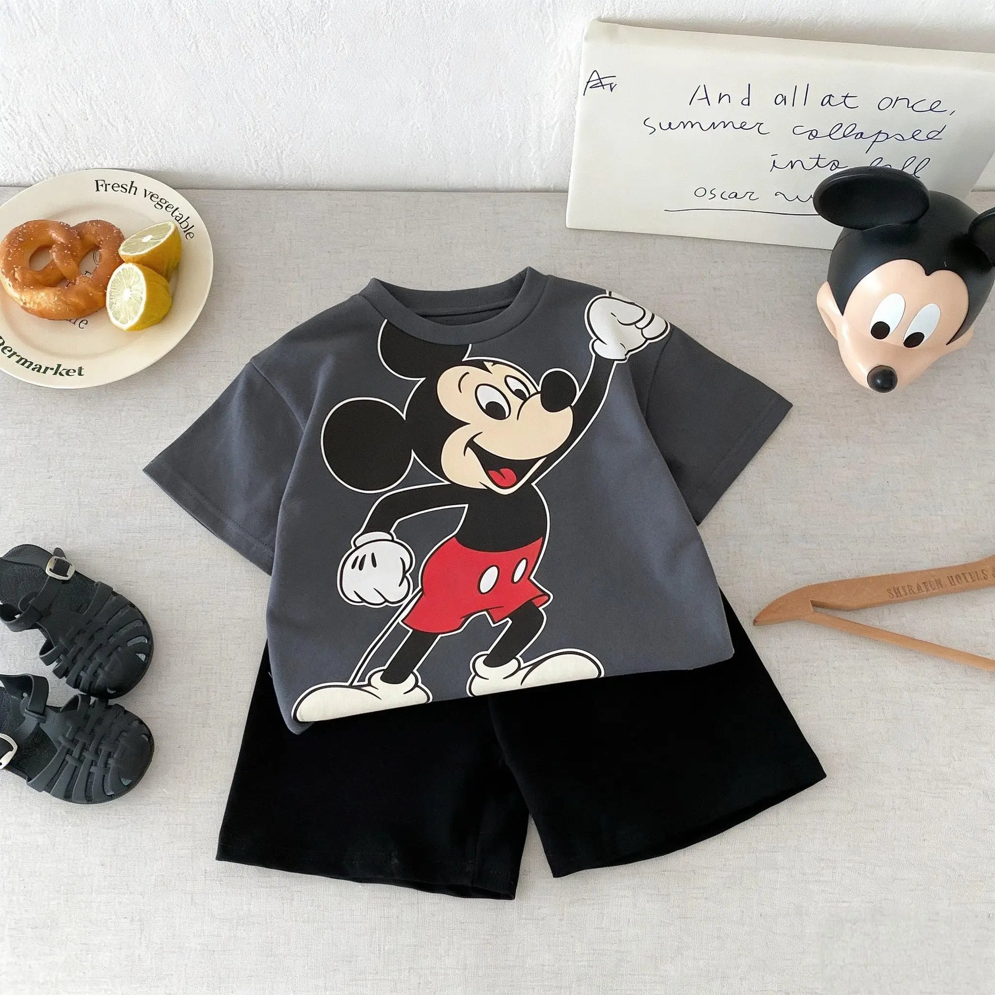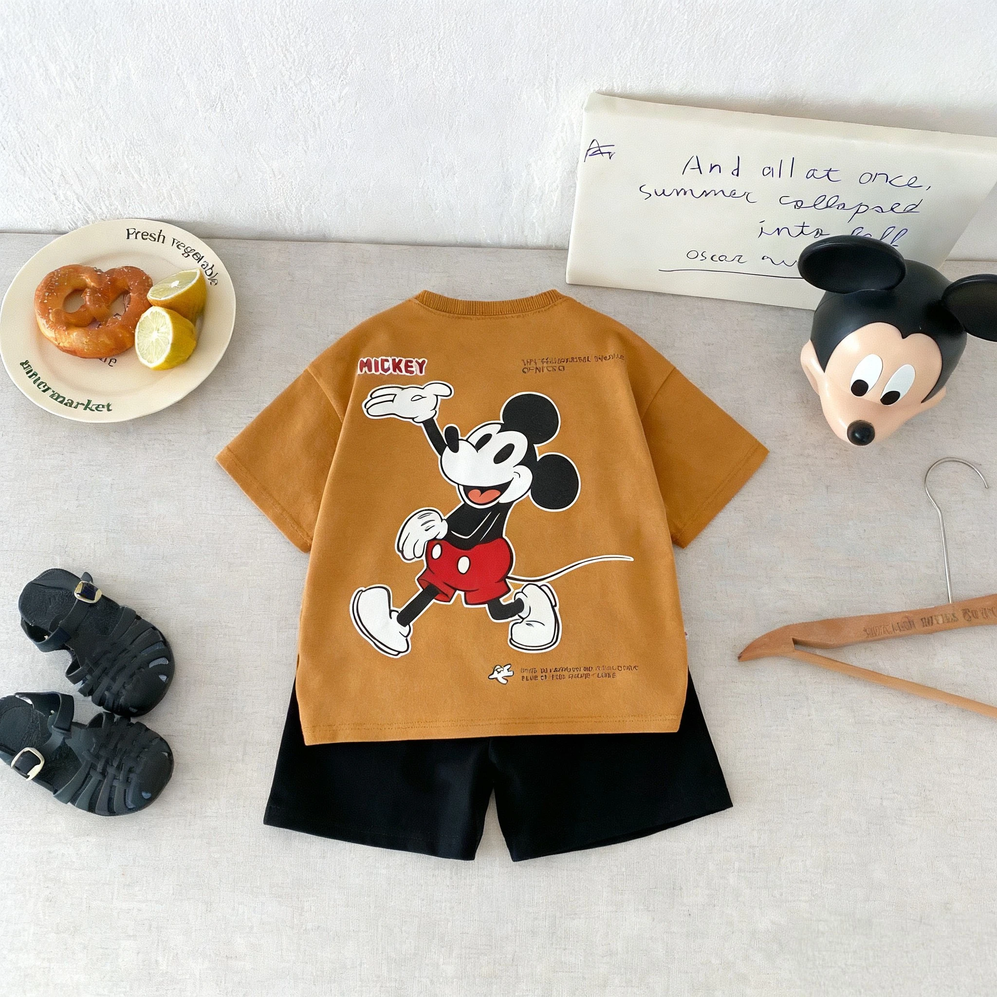 Cartoon Mickey Short Sleeve Suit Boys Clothes Summer Casual Kids Tracksuits Children T-shirt + Shorts 2piece/set Costume Outfits