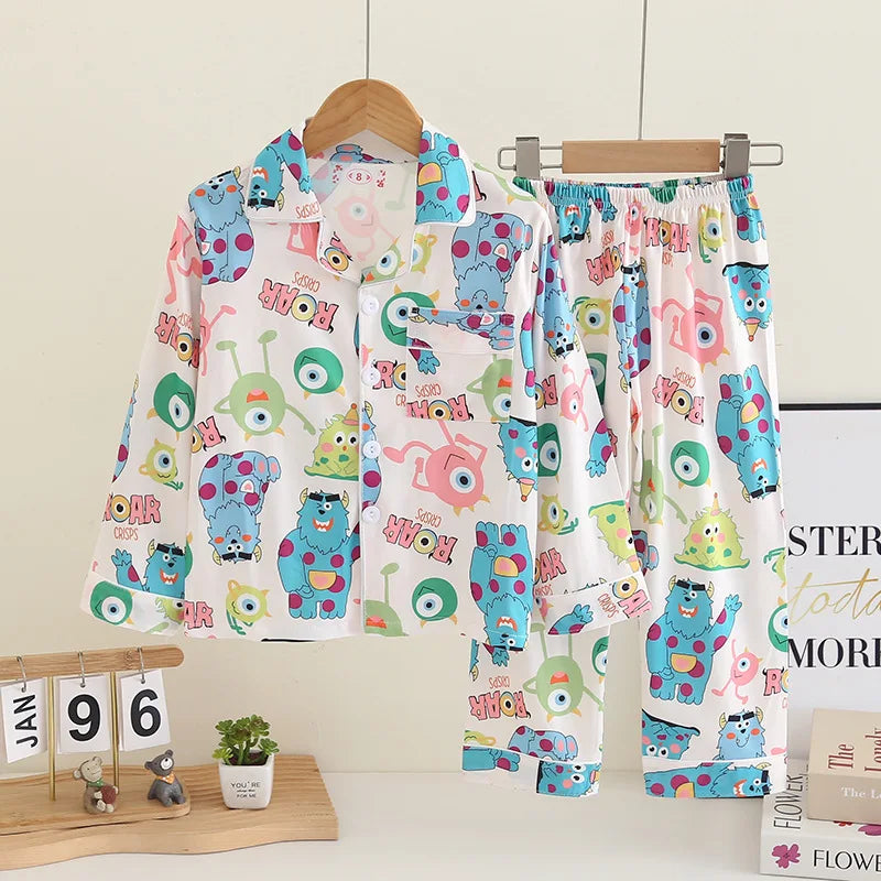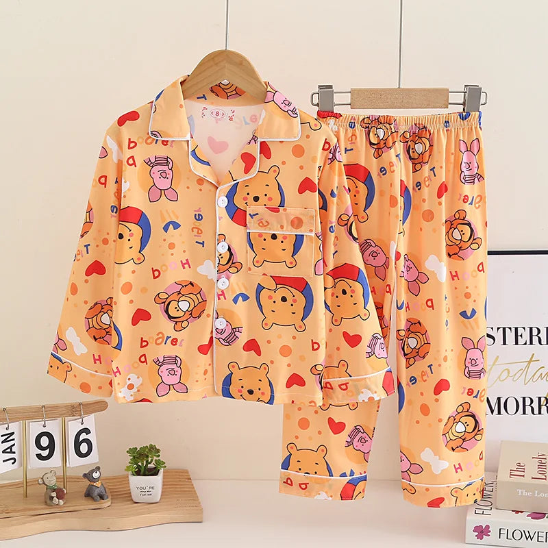 Cartoon New Spring Autumn Children's Pajamas Set Girls Boys Teenagers Stitch Long-sleeved and Pants Outside Home Clothes Set