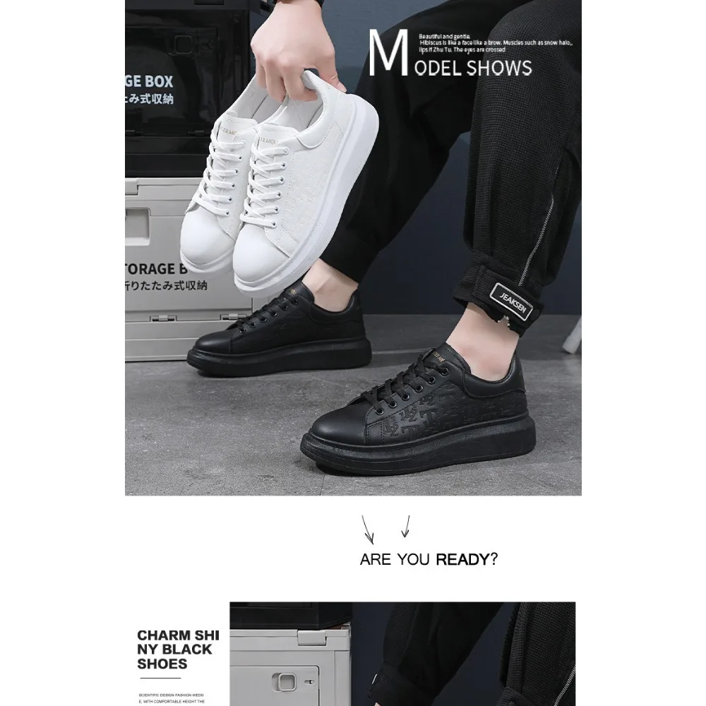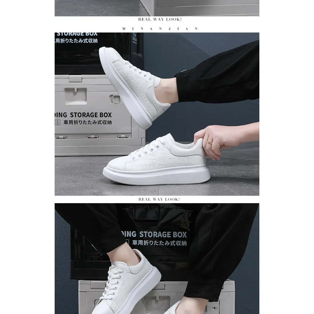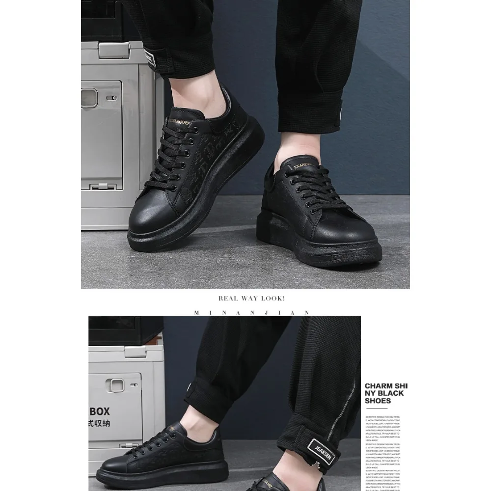Classic white shoes for men 2025 hot style versatile platform thick sole heightening men's shoes casual sneakers black