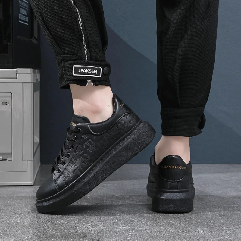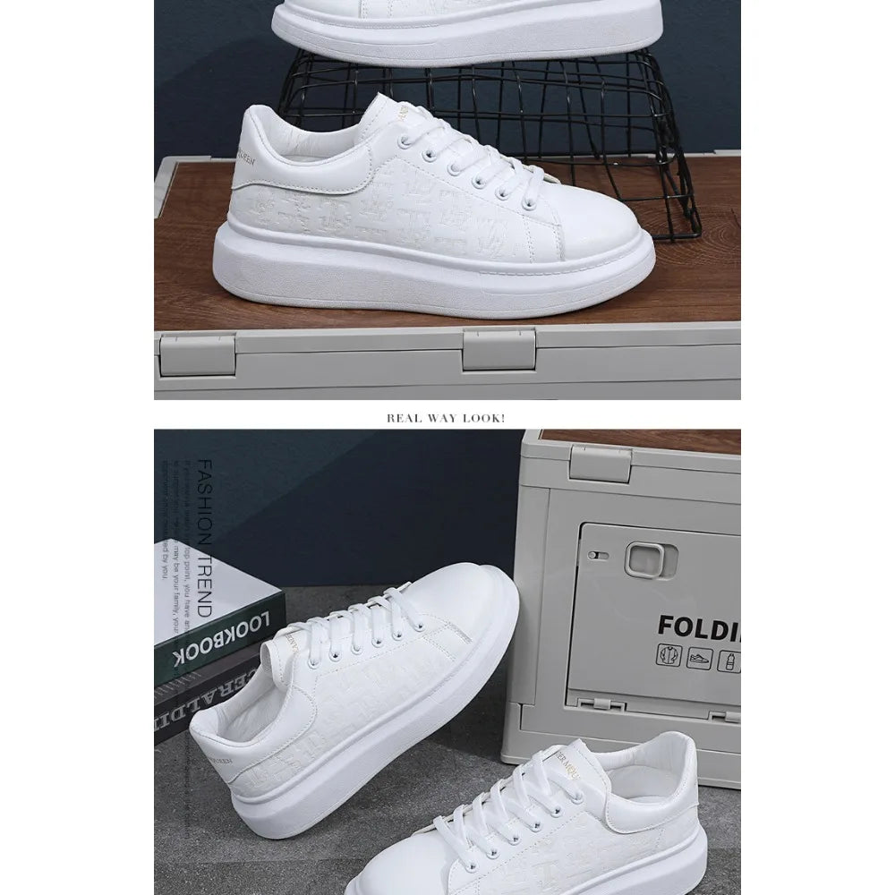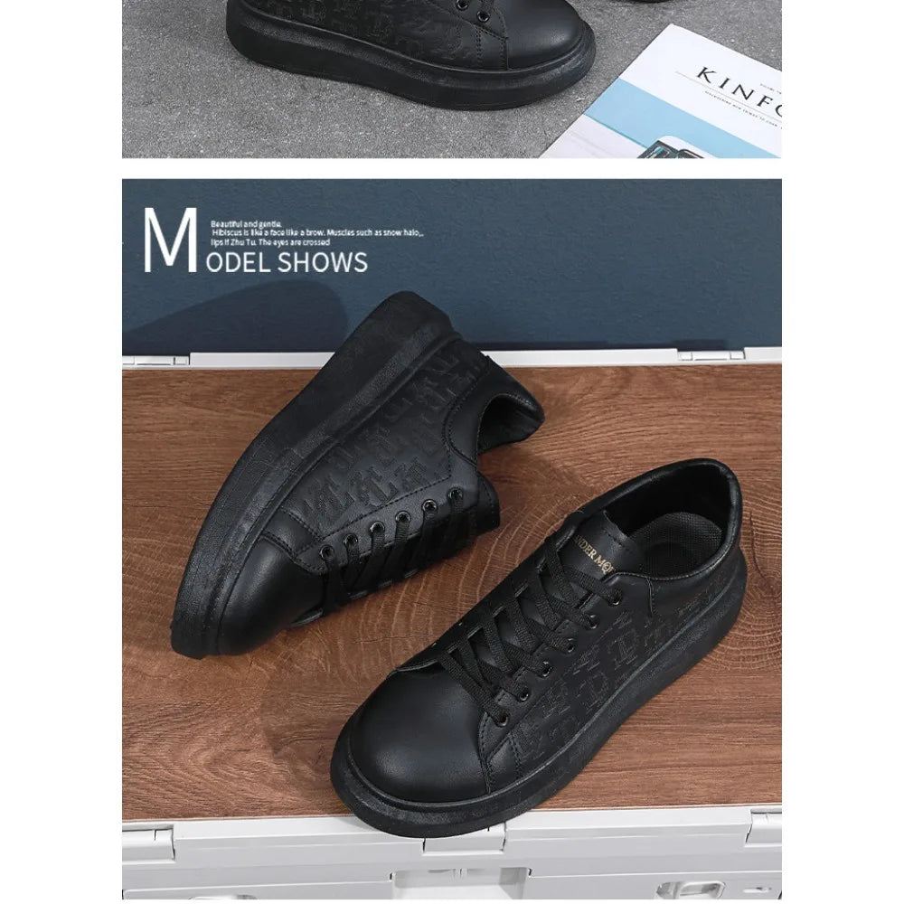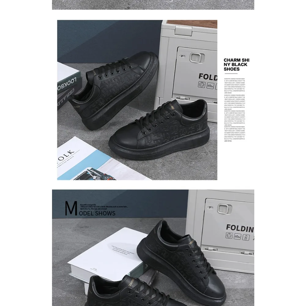 Classic white shoes for men 2025 hot style versatile platform thick sole heightening men's shoes casual sneakers black