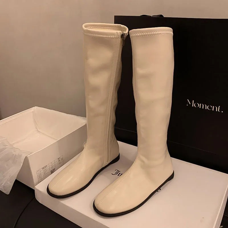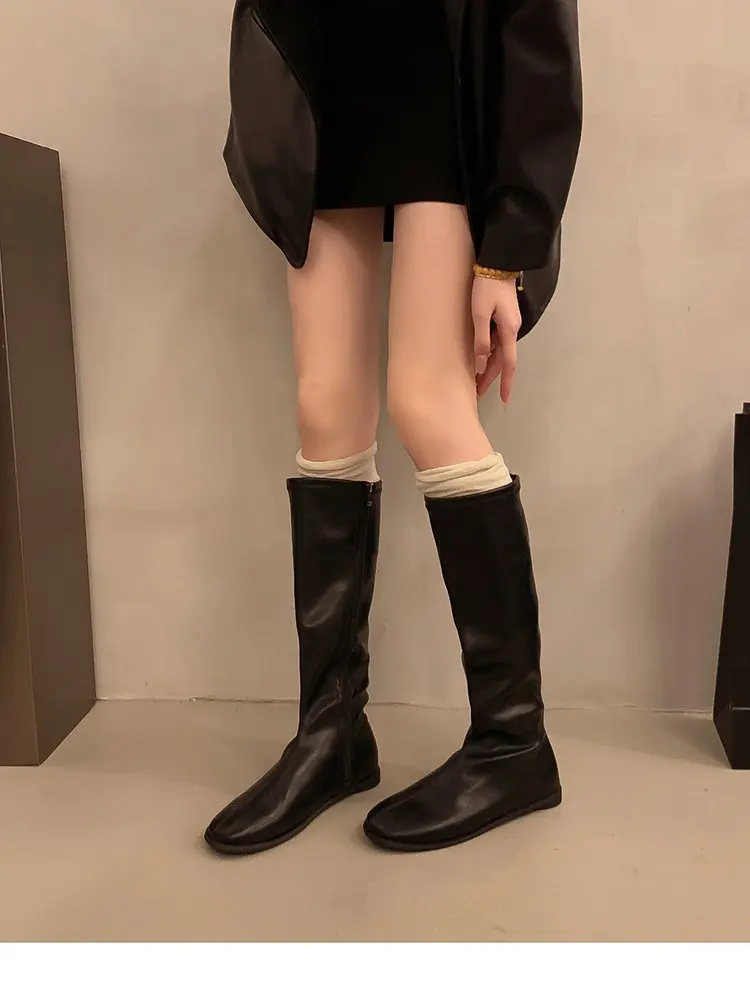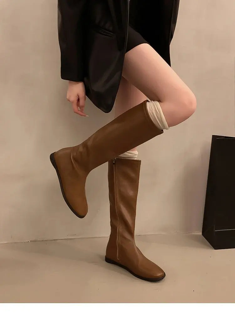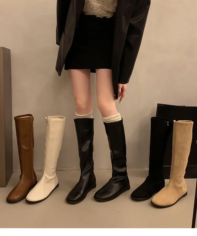 Comemore Long Boots Women's Shoes 2025 New Autumn and Winter Solid Color Botas Flat Bottom Round Head Knee High Boots for Women