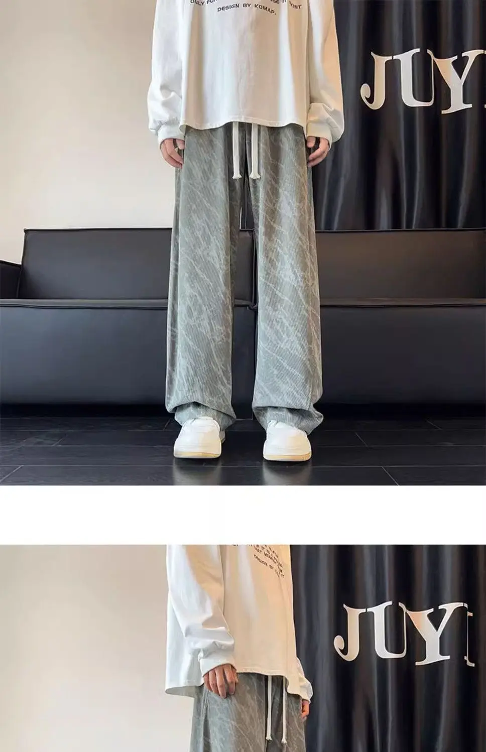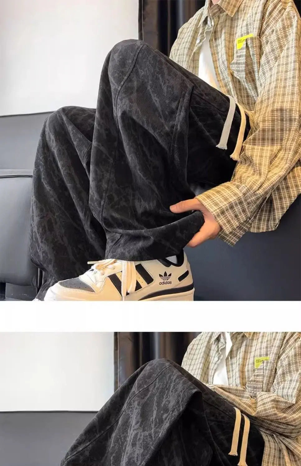 Corduroy Men's Pants Trendy Casual Spor Straight Leg Fce Lined Wide Leg Autumn Winter High Street Cool American Sle