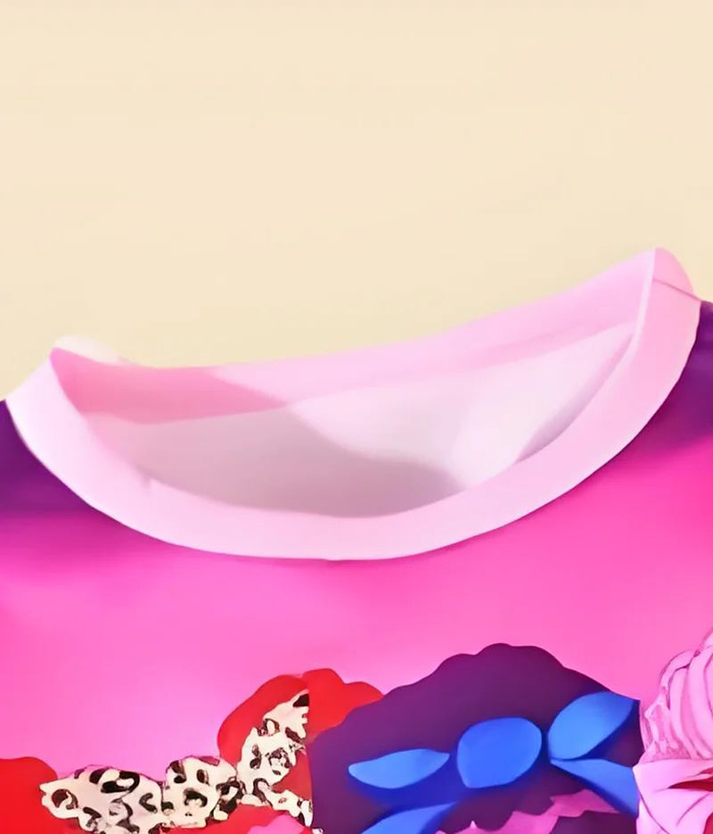Cute Girl Suit, Cartoon Girl Print With Patterned Pants, Suitable For Girls To Wear Summer