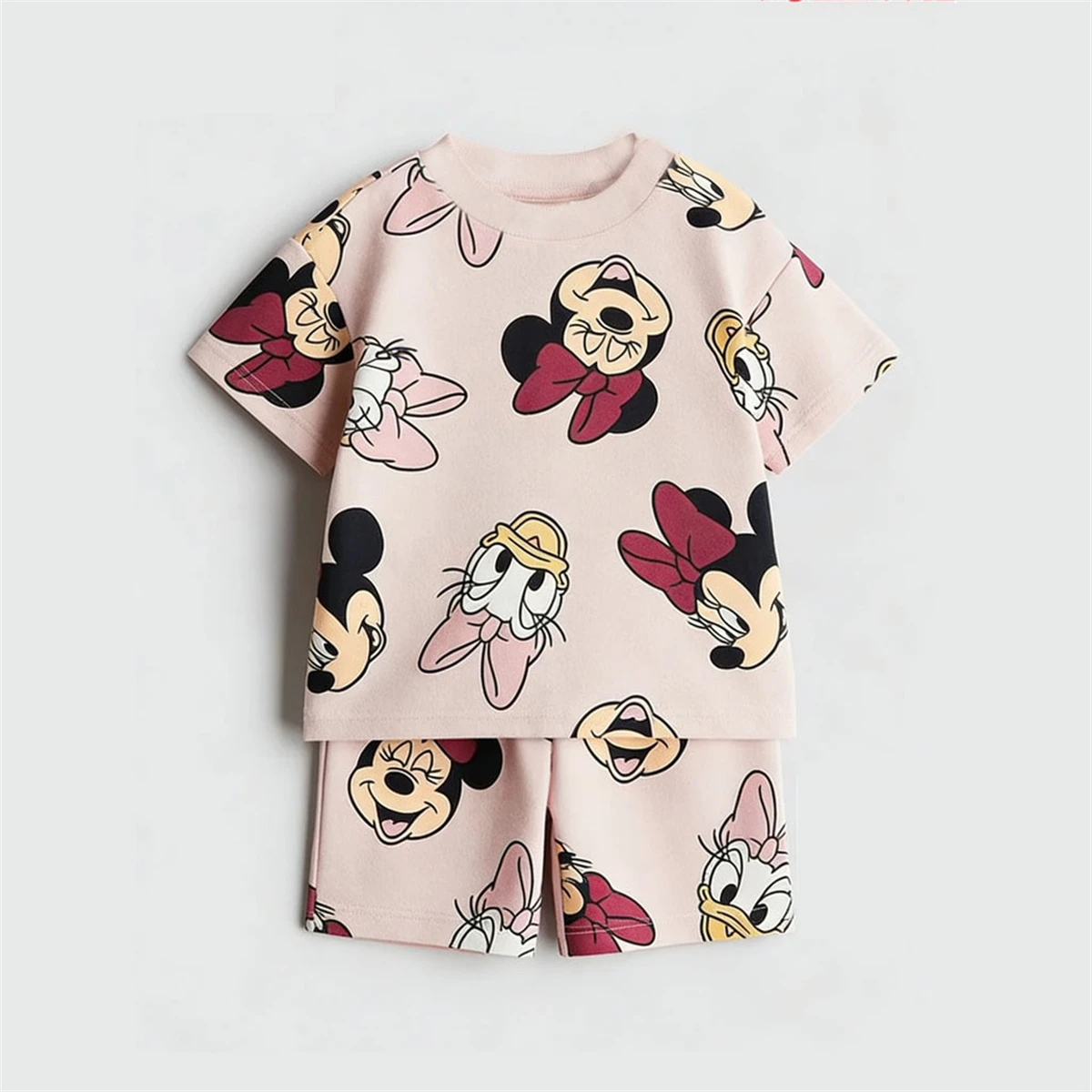 Disney Costume Full Print Outfits Boys And Girls Summer Clothing Lovely Tshirt+Shorts Two Piece Set New Fashion Clothing Suit