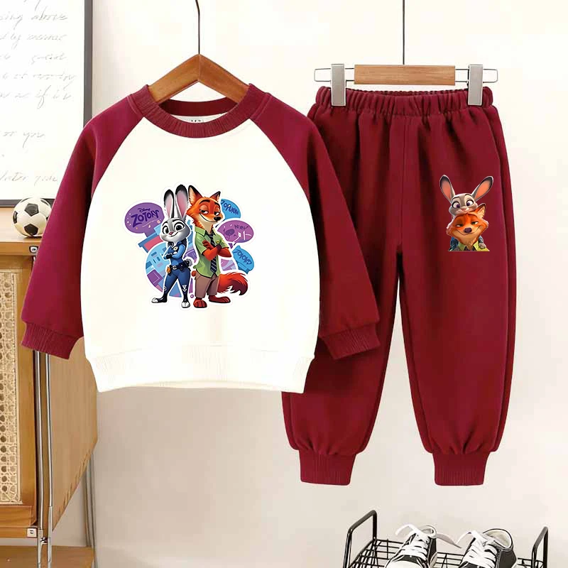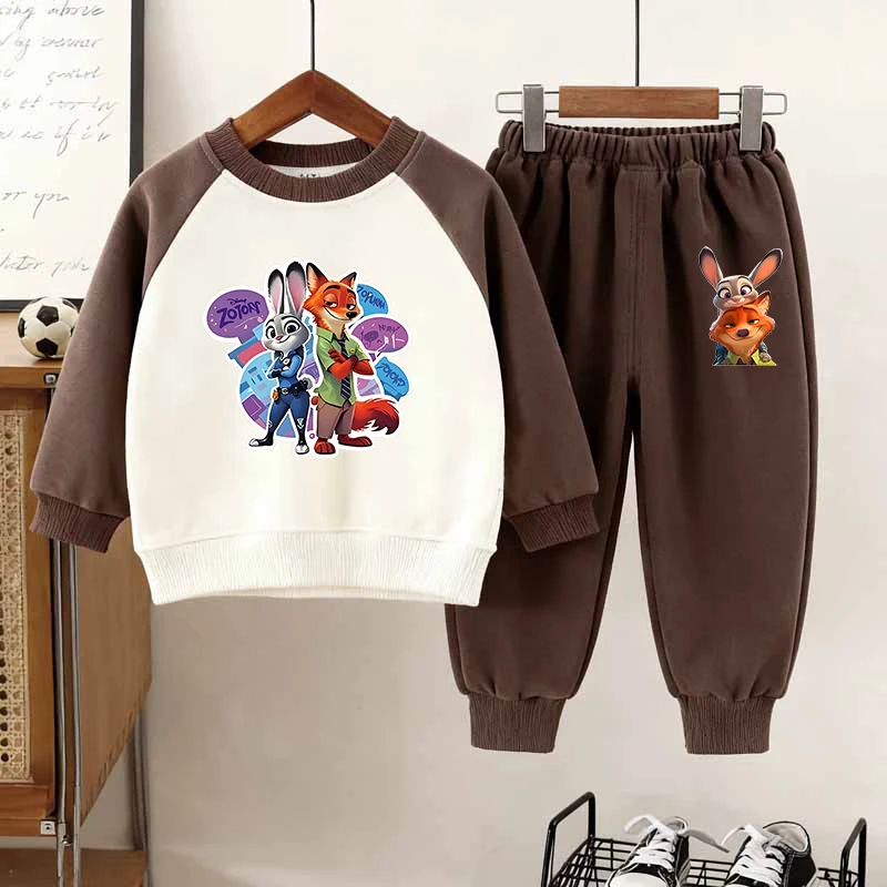 Disney Zootopia Cartoon Printed Children Autumn Clothing Set Fashion Splicing Sleeve O-Neck Hoodies and Long Pants 2Pcs Set Wear
