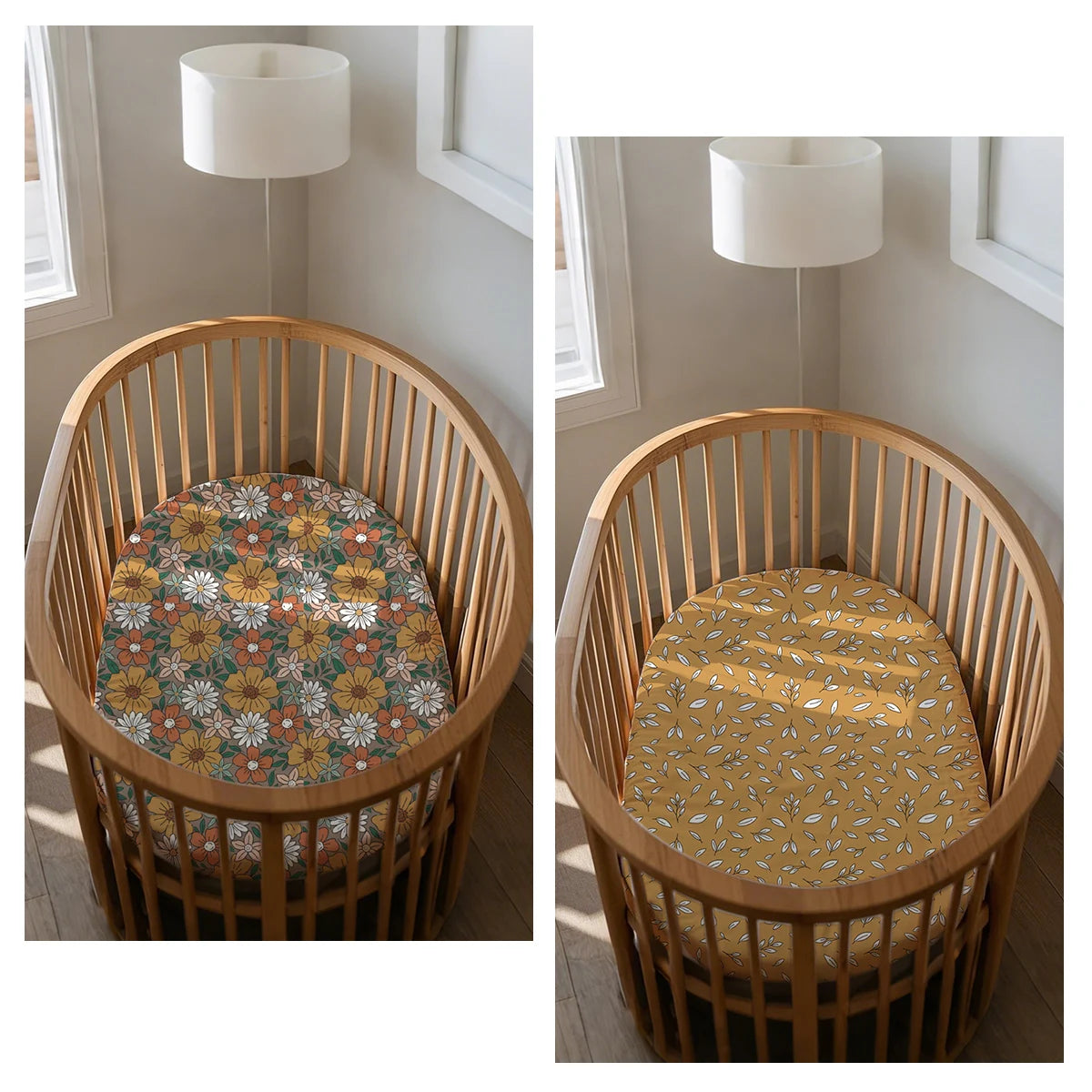 Elinfant 2PCS Polyester Fitted Crib Sheet Set,Toddler Bed Sheets Mattresses,Changing Pad Cover,Baby Fitted Bassinet Bed Sheet