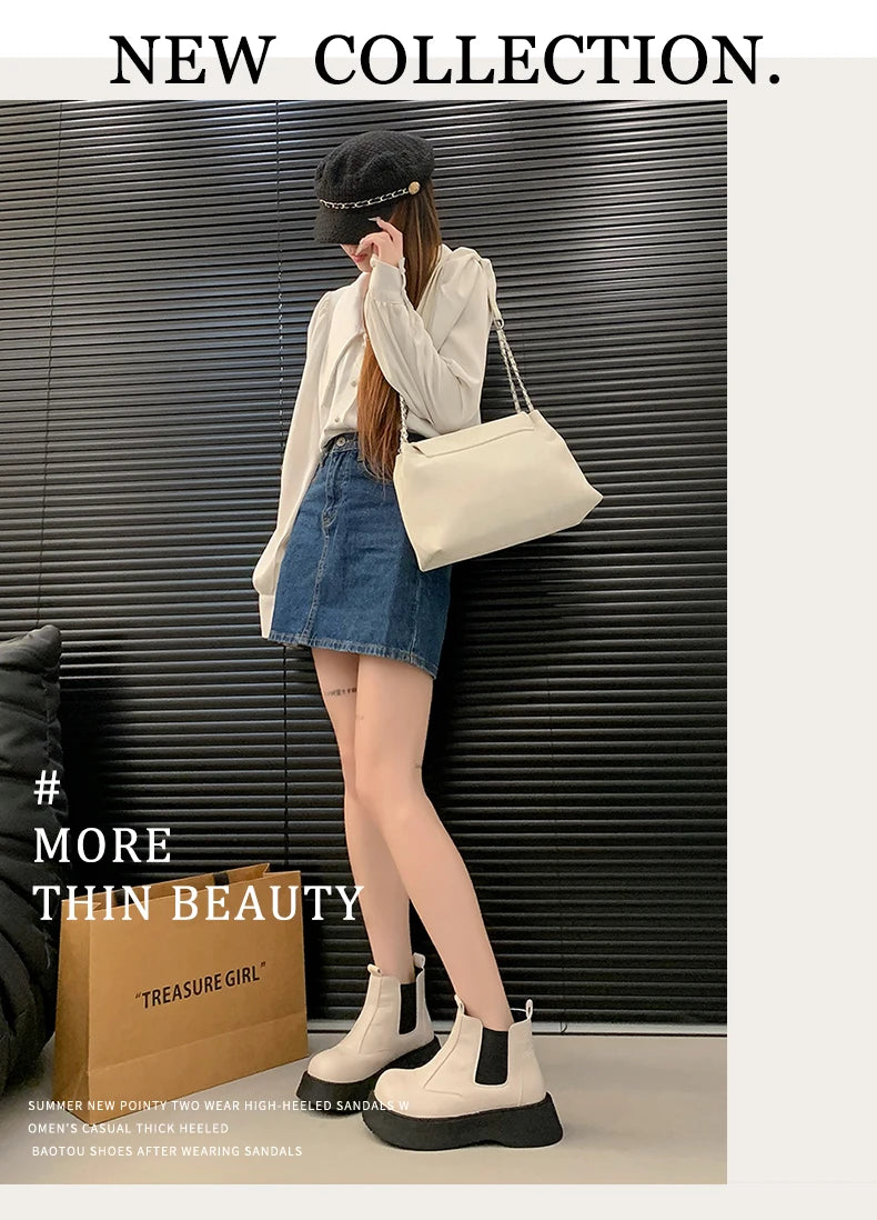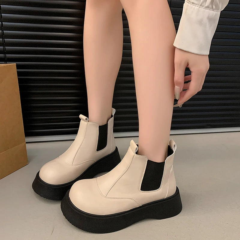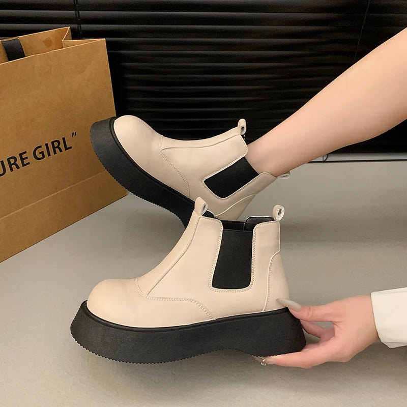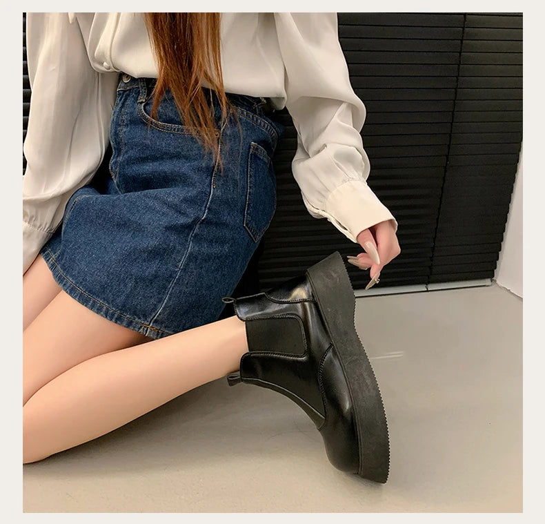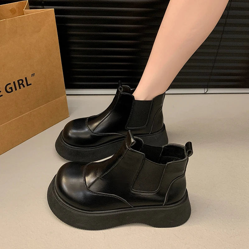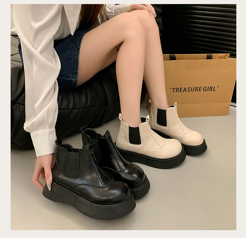 Fall New Style Thick-soled Women's Fashionable Boots, Retro Big-head Short Boots, Anti-slip and Wear-resistant Outdoor Boots