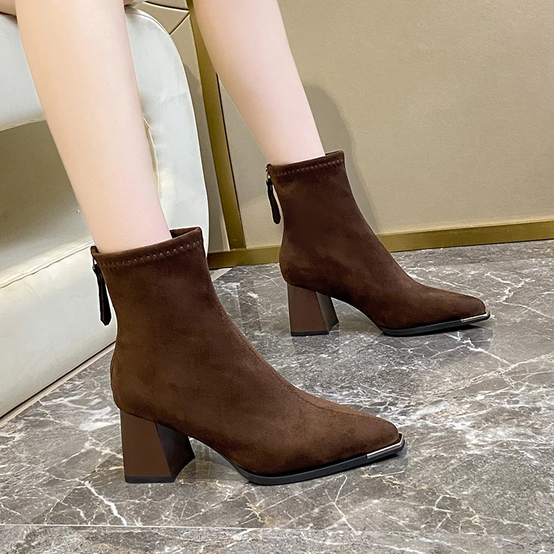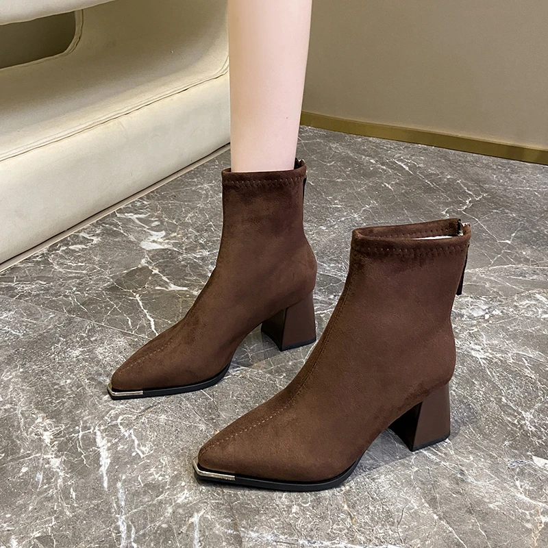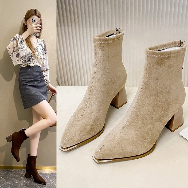 Fashion Pointed Toe Suede Single Boots 2025 New Temperament Block Heel Fashion Boots Booties Women
