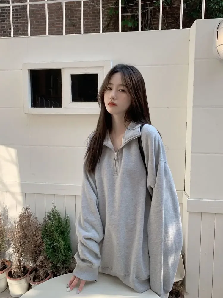 • Trendy Design : This grey sweatshirt features a trendy polo collar and loose mid-length design, perfect for the autumn and winter seasons.