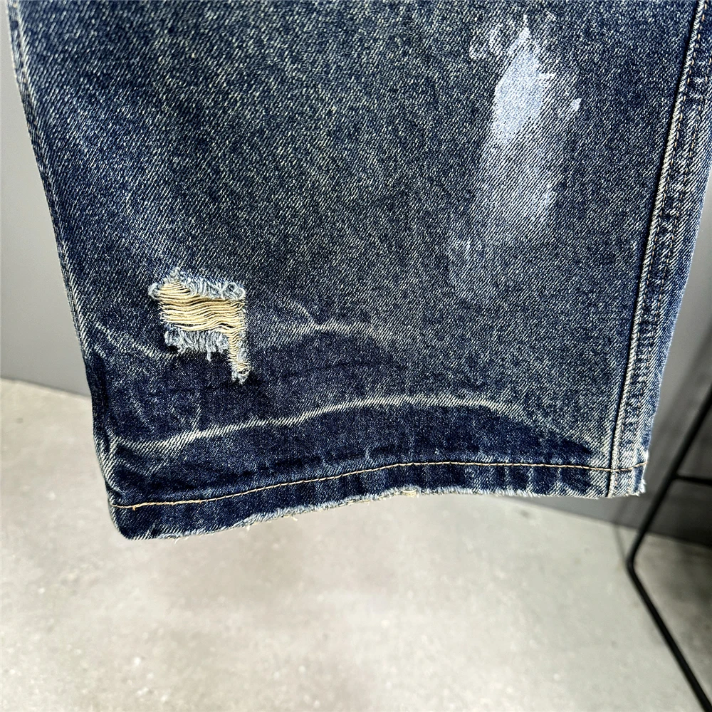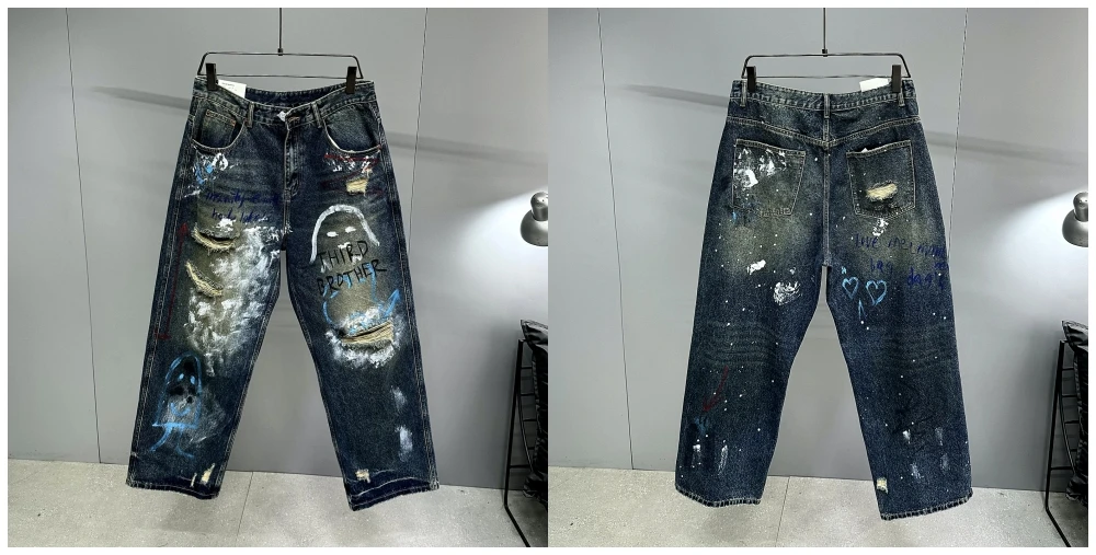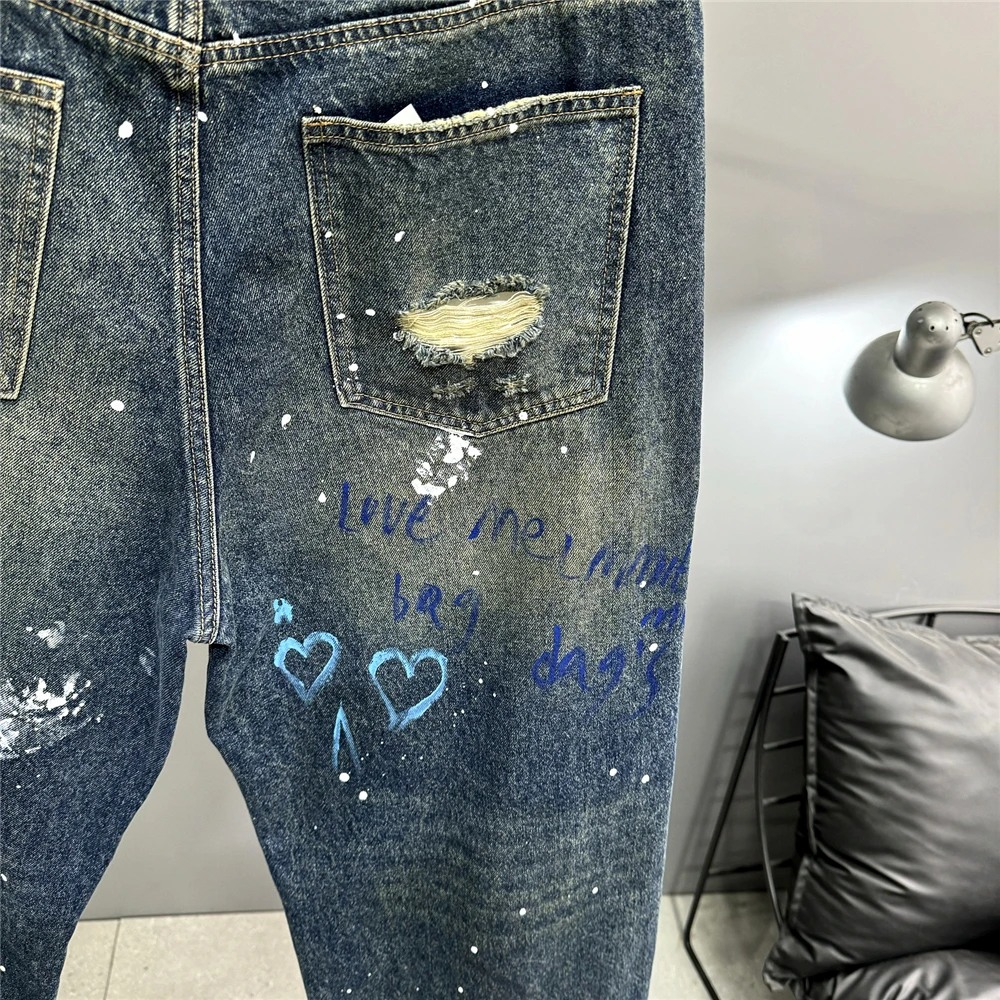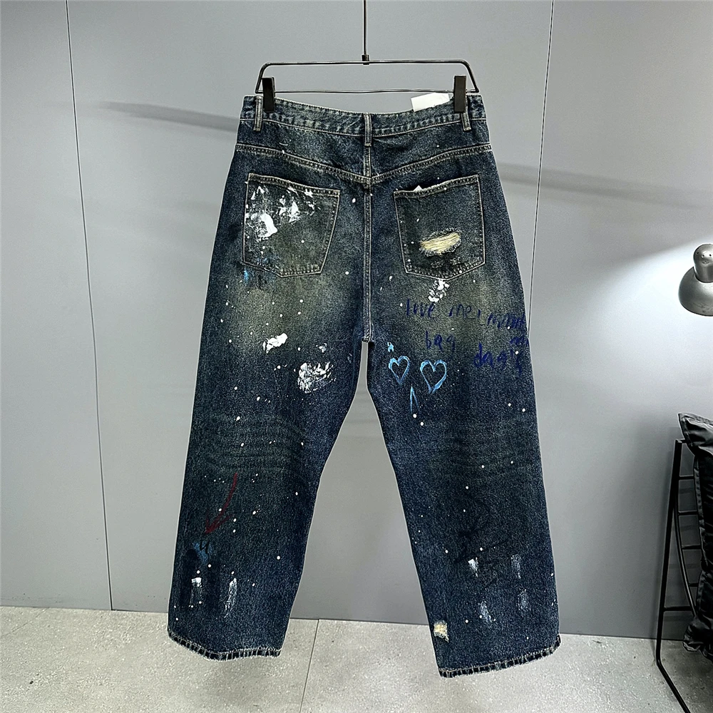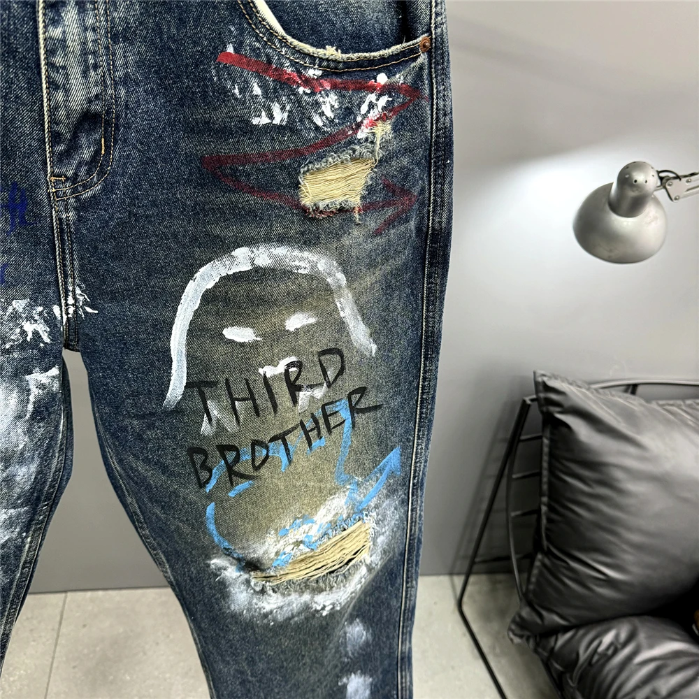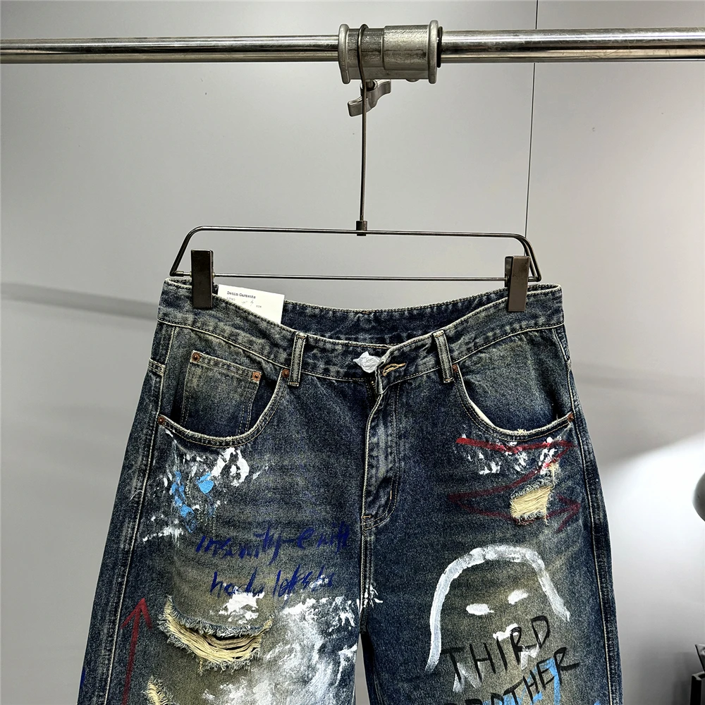 High End Men'S Clothing Hip Hop Graffiti Baggy Jeans For Men Streetwear Skateboard Ripped Jeans Korean Trendy Denim Trousers