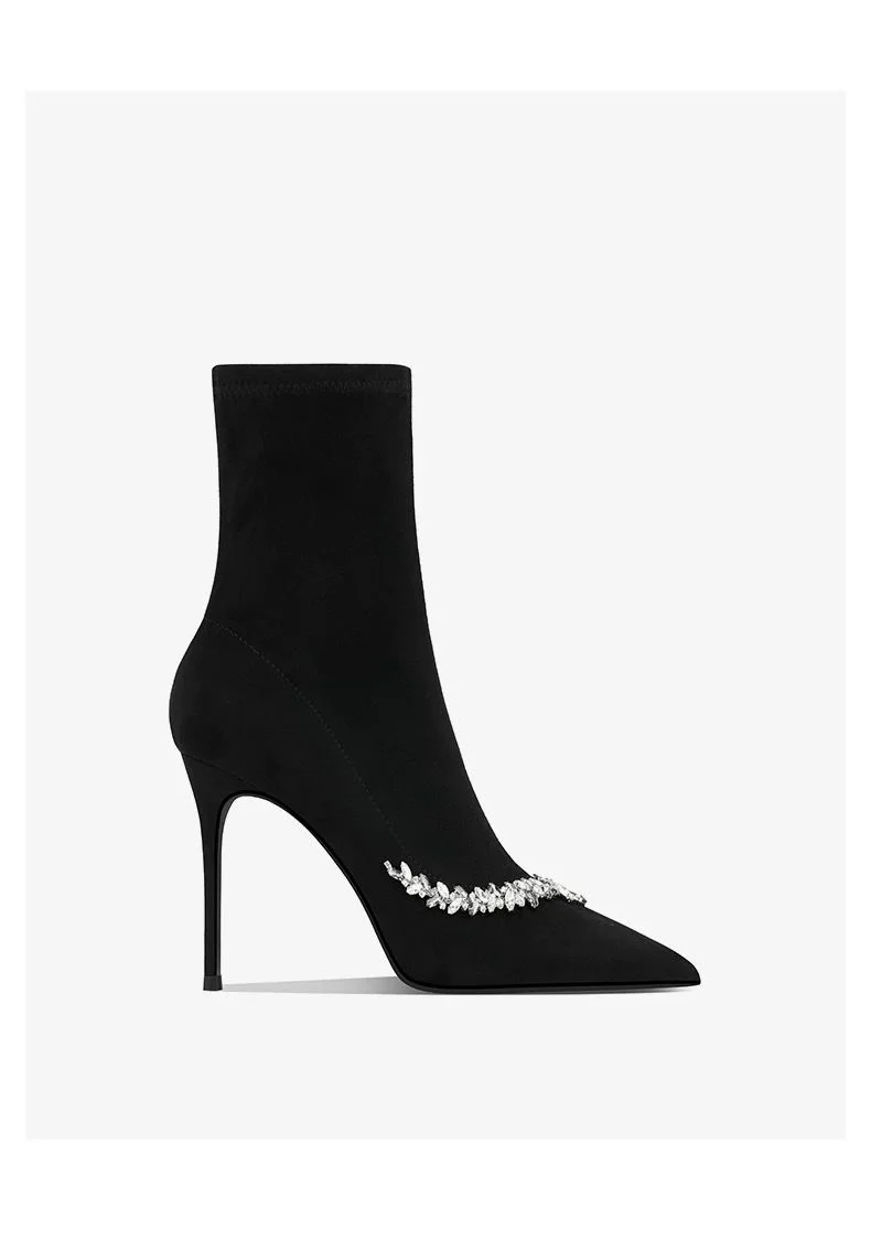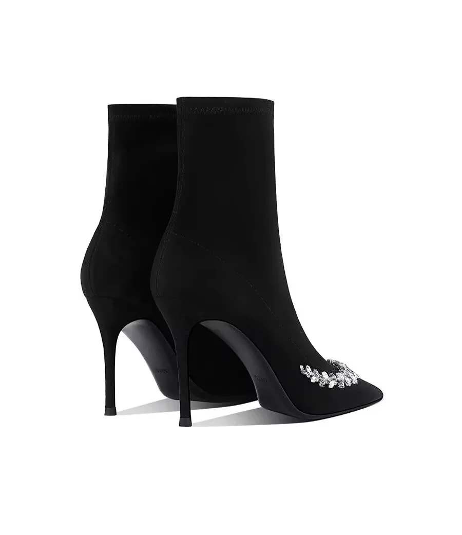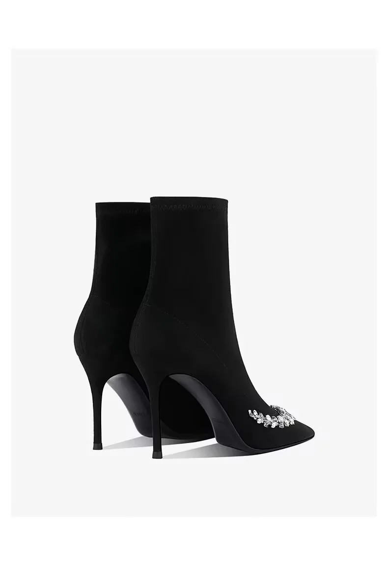High-end pointed-toe, thin-heeled, fashionable ankle boots for women, new water diamond, elegant and noble ankle boots