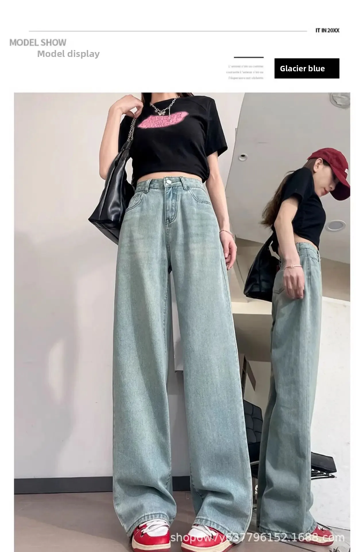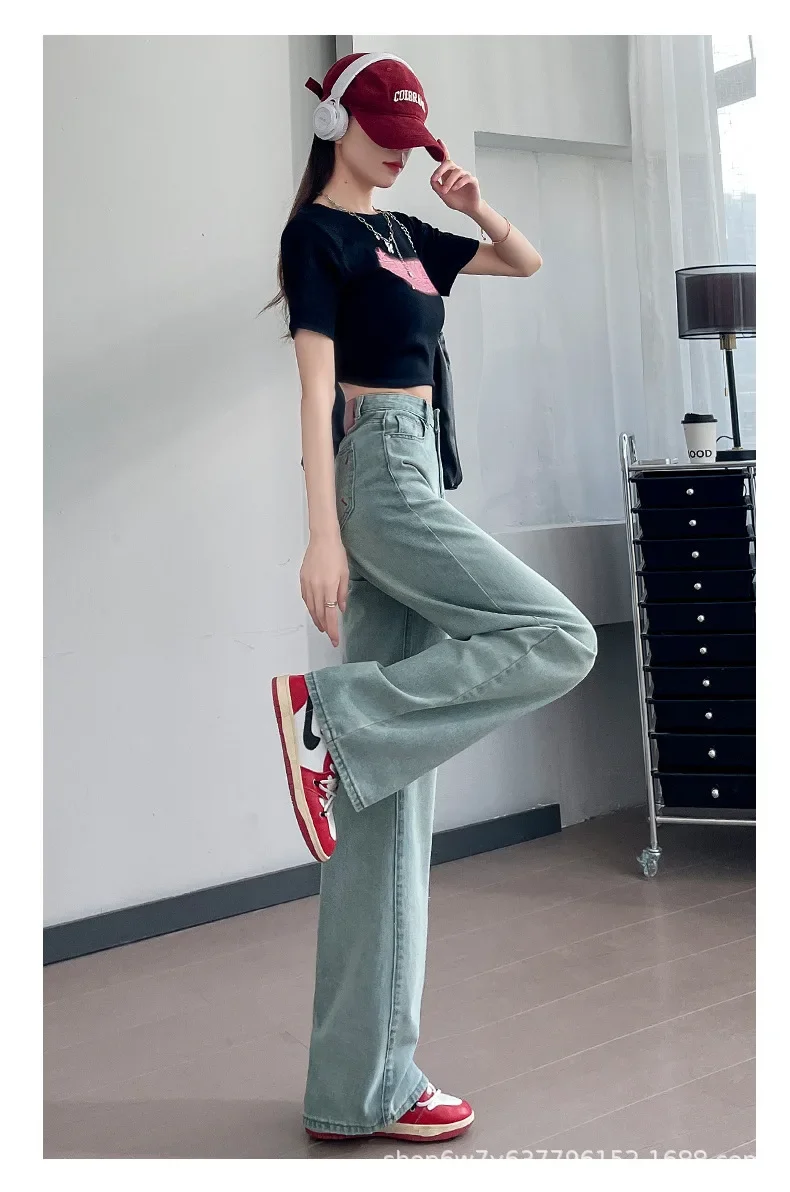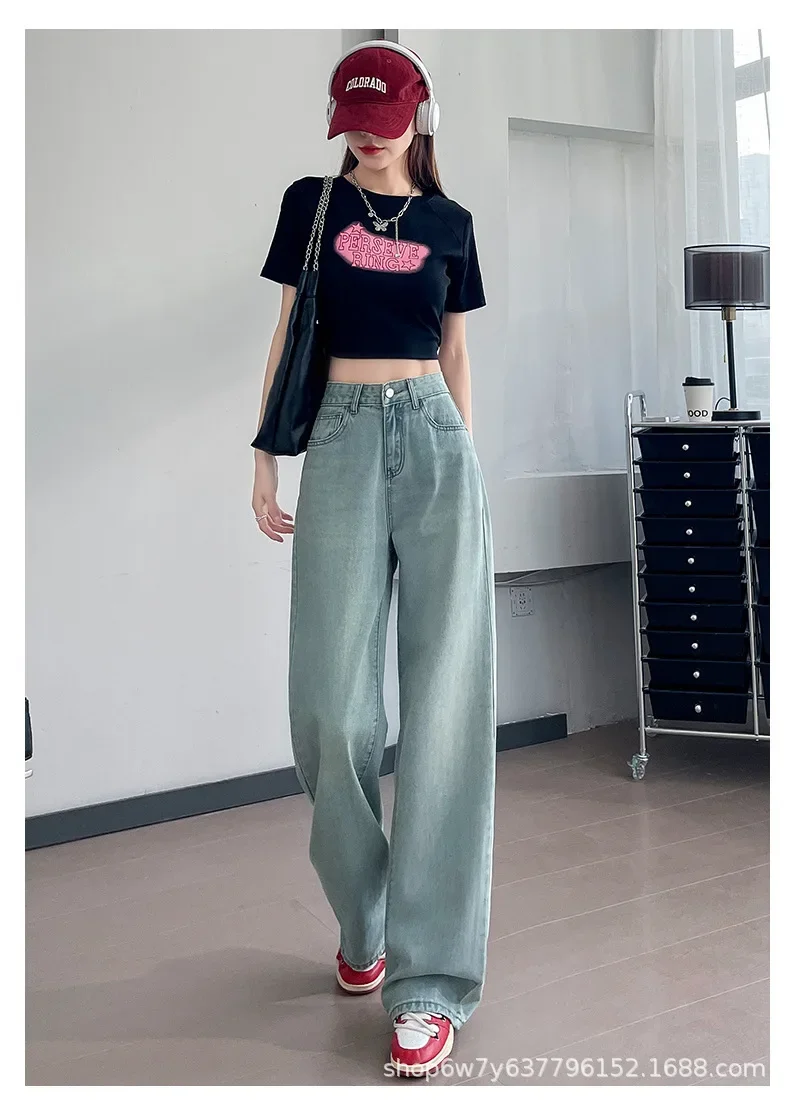 High Waist Loose Fit Short Women's Jeans Straight Leg Wide Leg Denim Pants Summer New Style Embroidery Iceberg Hot Sale Of The S