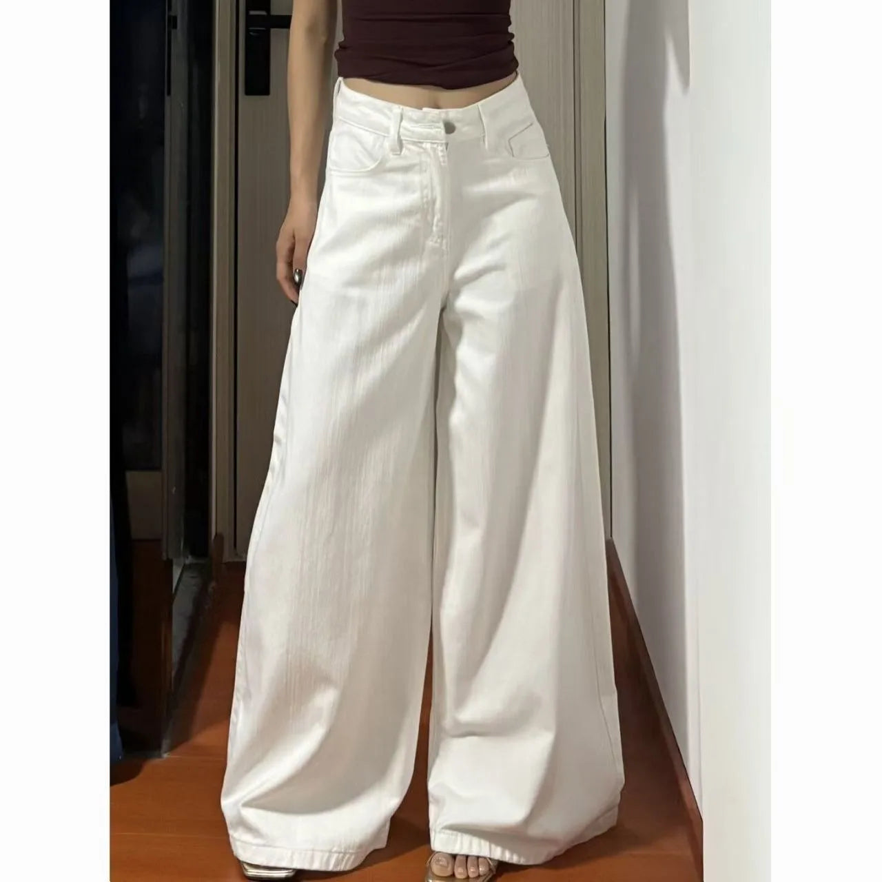 High Waist Wide Leg Straight Cut Jeans White Loose Slimming Drapey Floor Length Trousers Street Style Trendy Jeans