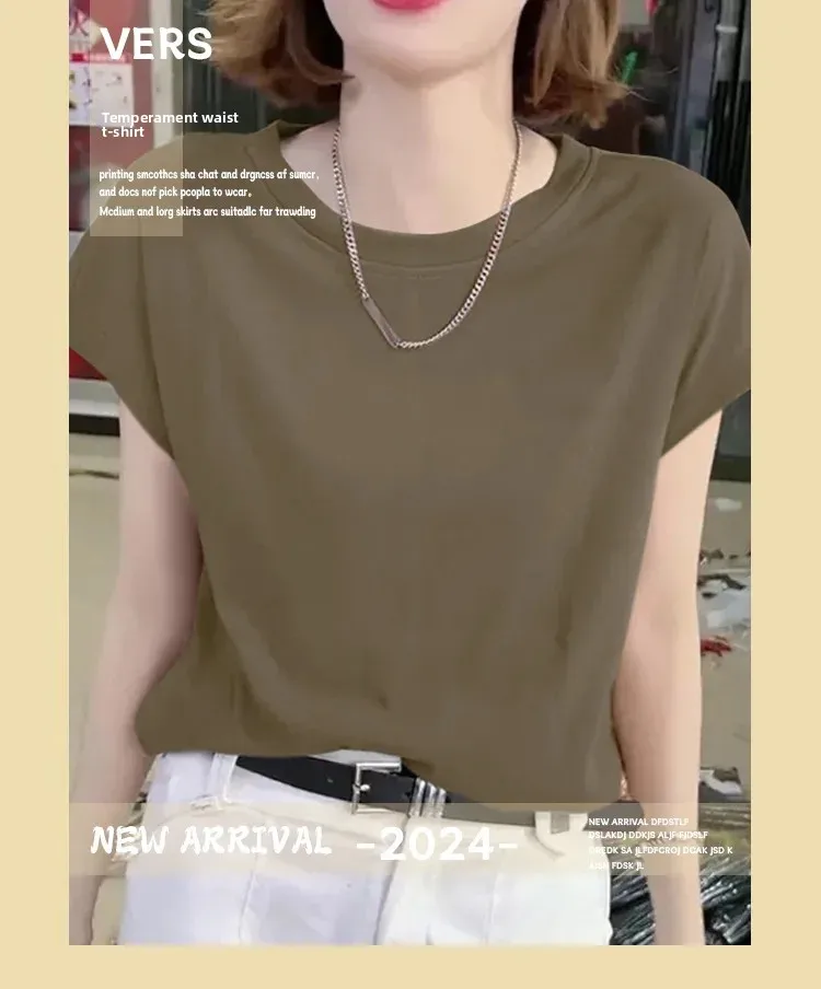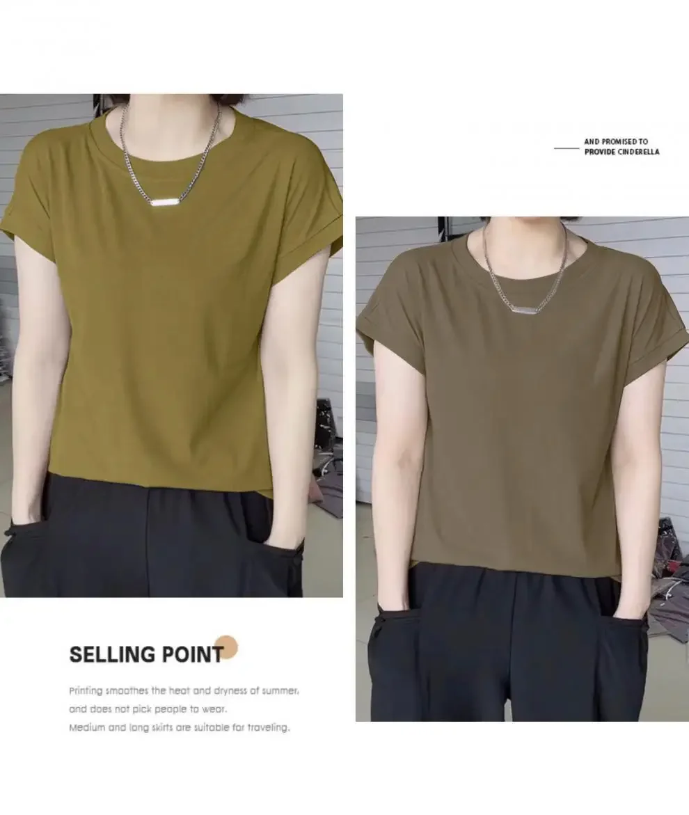 Ice Silk Loose Short Sleeve Crew Neck T-Shirt Knitted Polyester Fiber Summer Basic Top Ice Thread Decorated Bottom Shirt