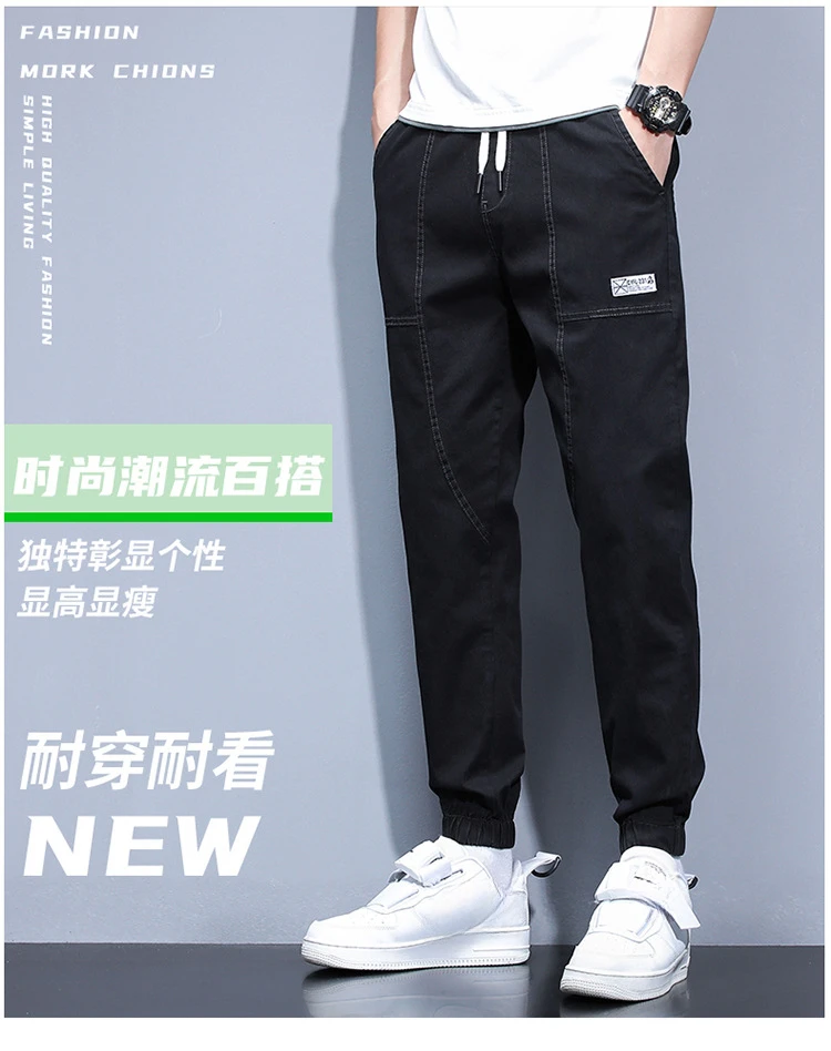 2135 fleece-lined thickened men's 2021 Winter new trendy loose straight Stretch Slim Fit Ankle tight trousers men
