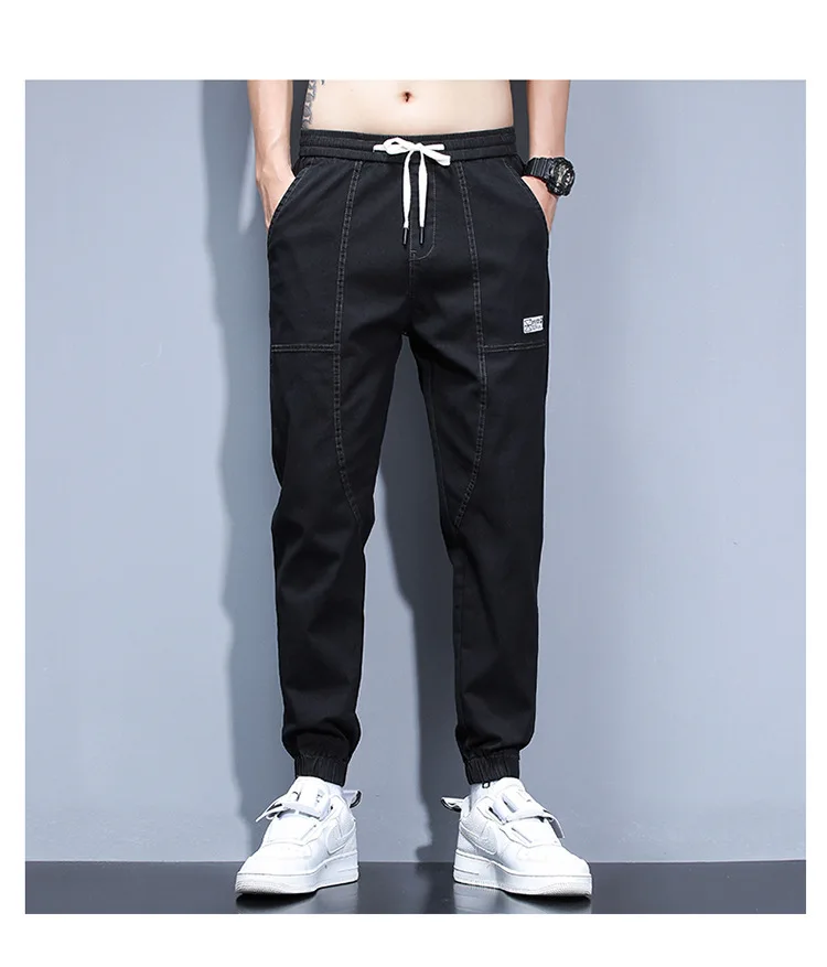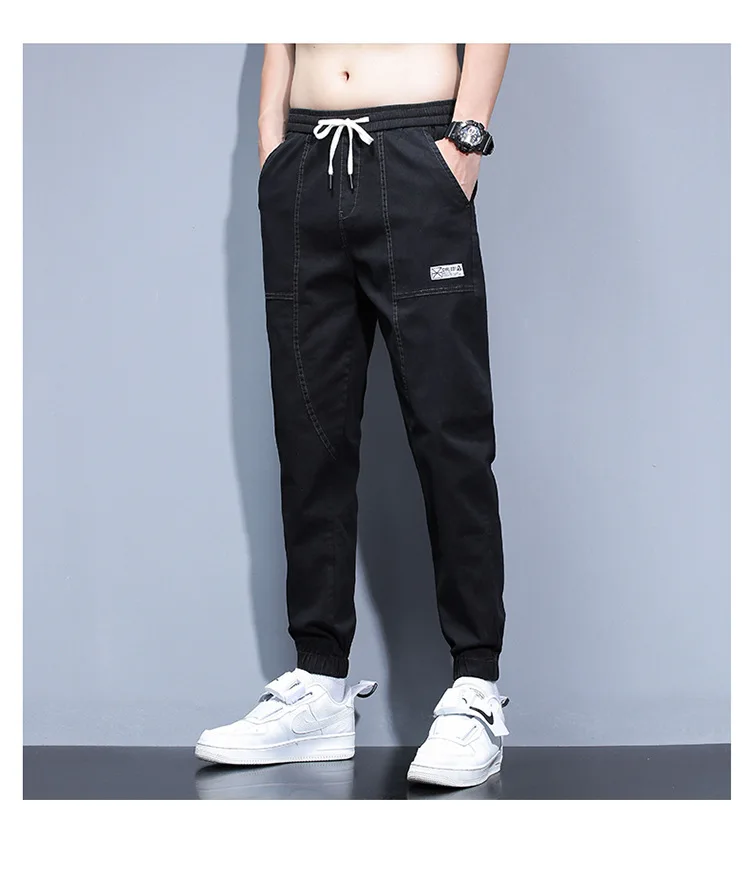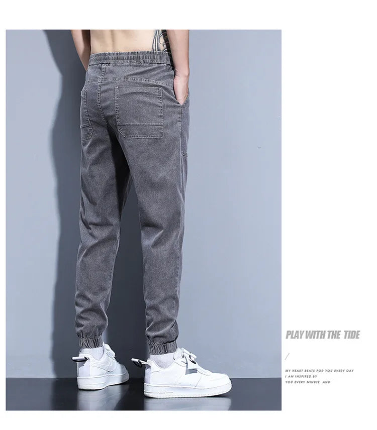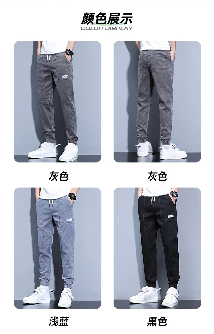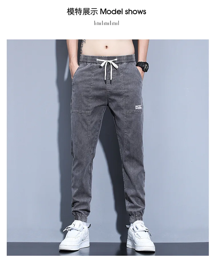 Jeans Open Pants Men's Fall/Winter Fleece-Lined Thick Loose Ankle Banded Working Pants Harem Casual Pants