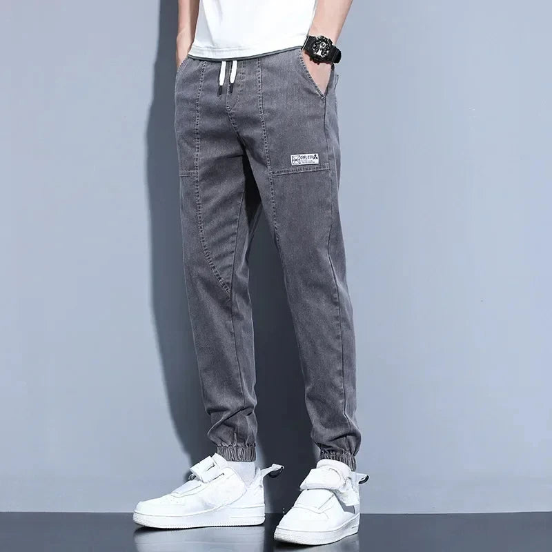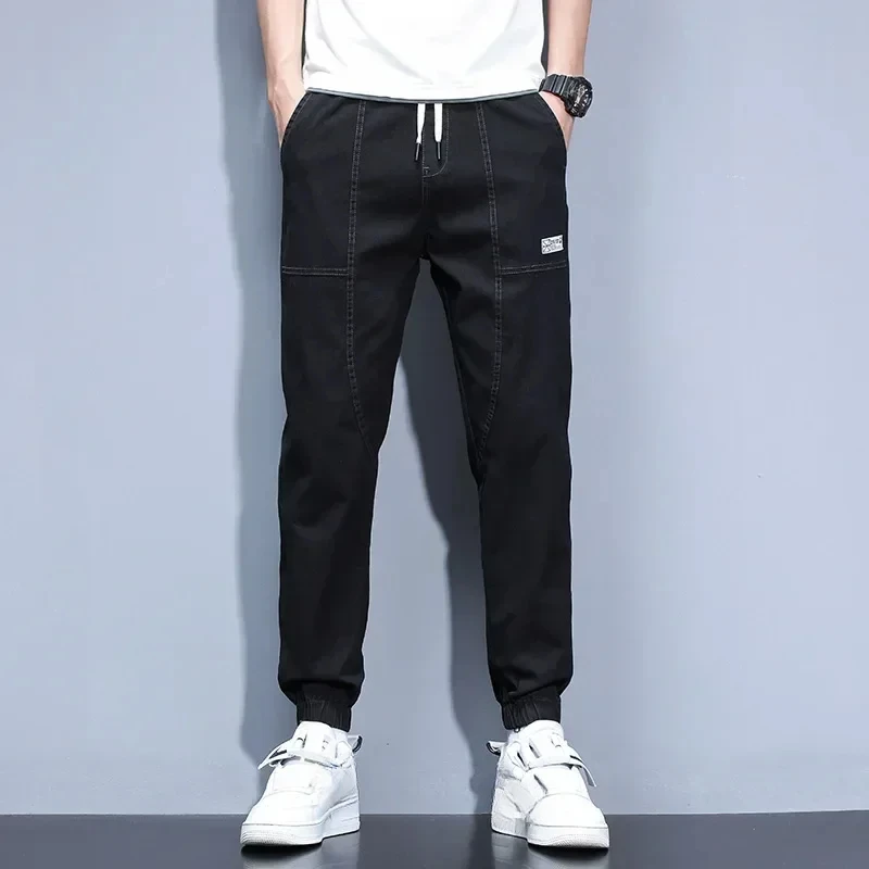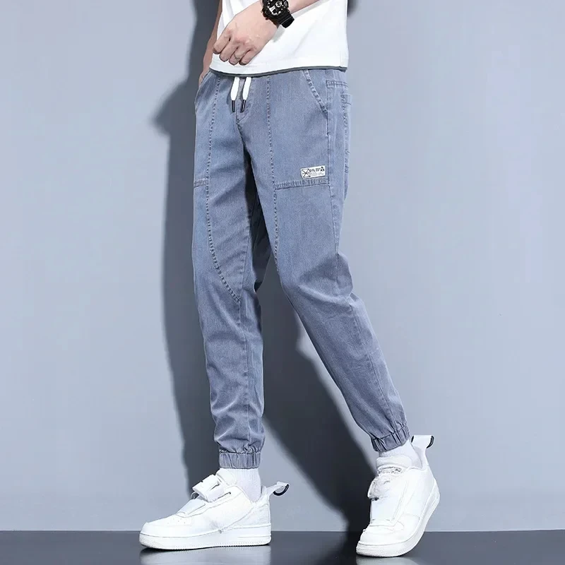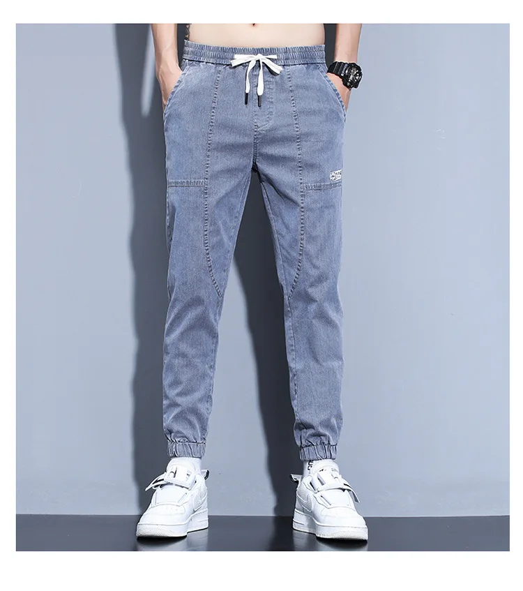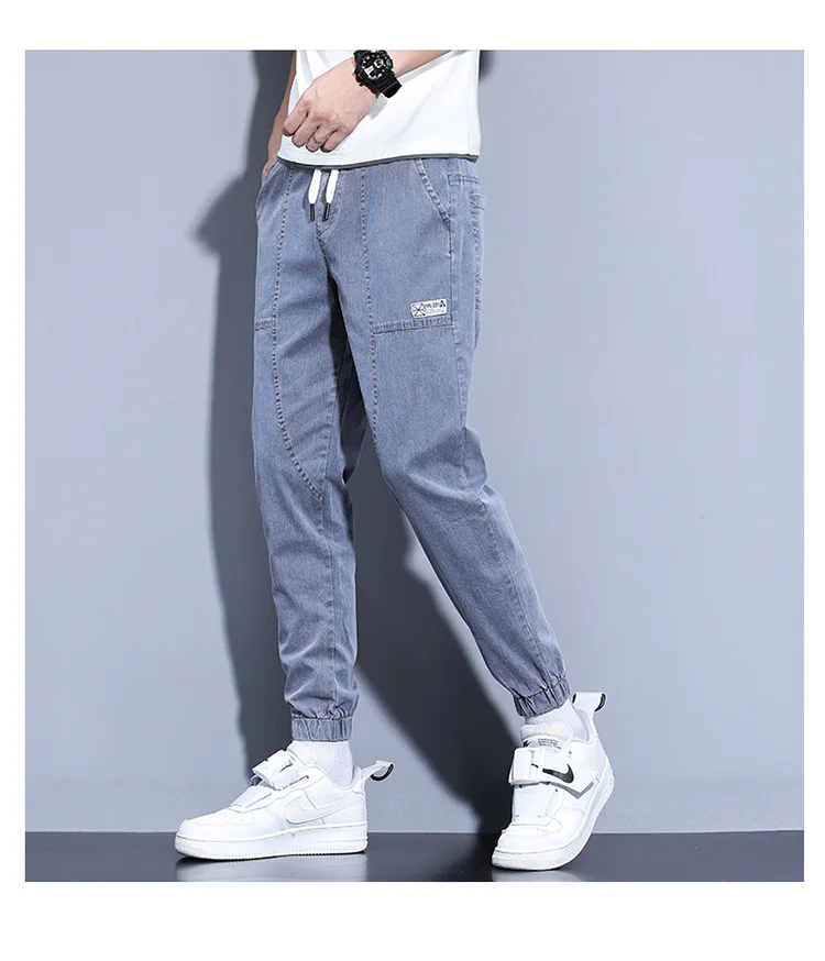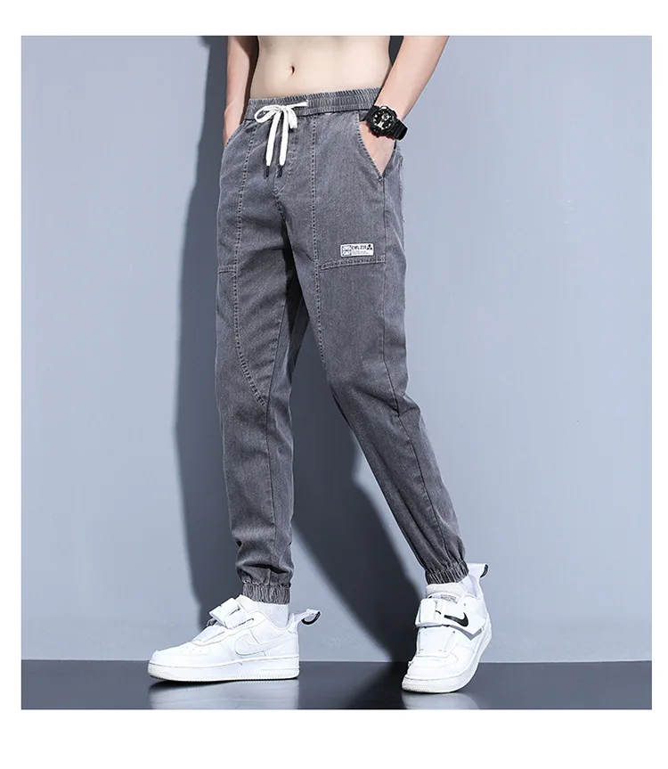 Jeans Open Pants Men's Fall/Winter Fleece-Lined Thick Loose Ankle Banded Working Pants Harem Casual Pants