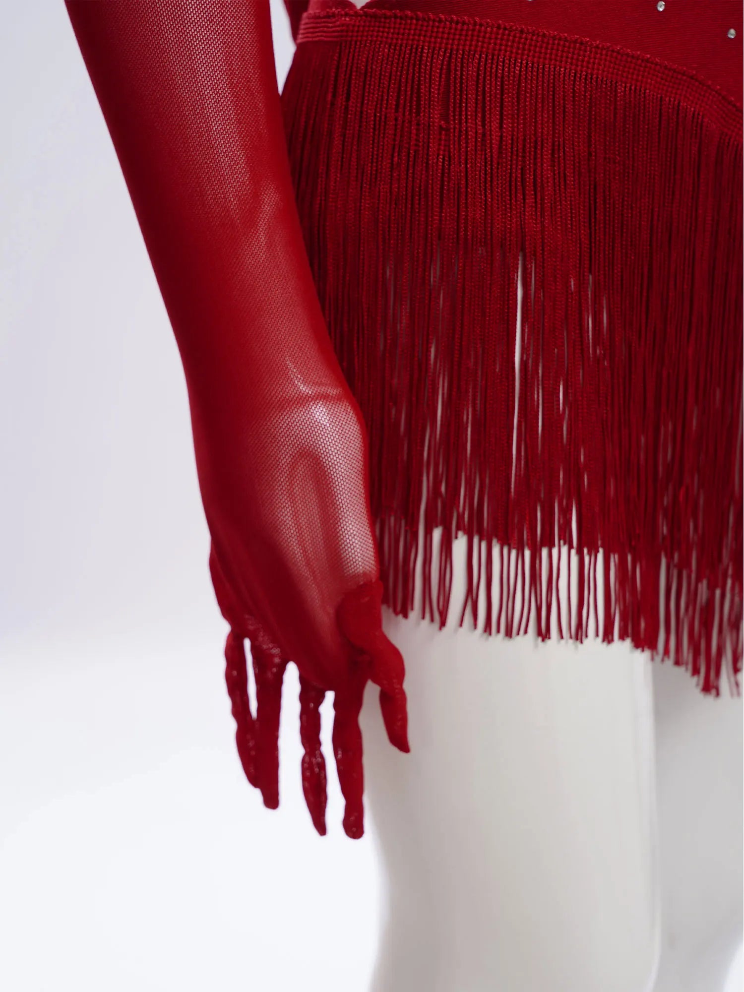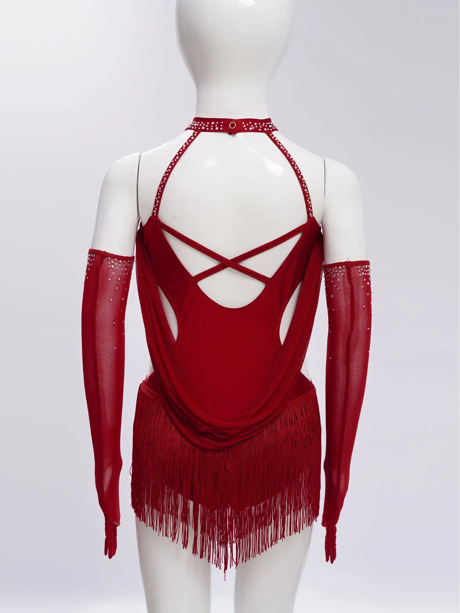 Briefs style at the bottom ensures ease of movement, and two layers asymmetrical mesh skirt with split and flowy design shows the beauty of dance.