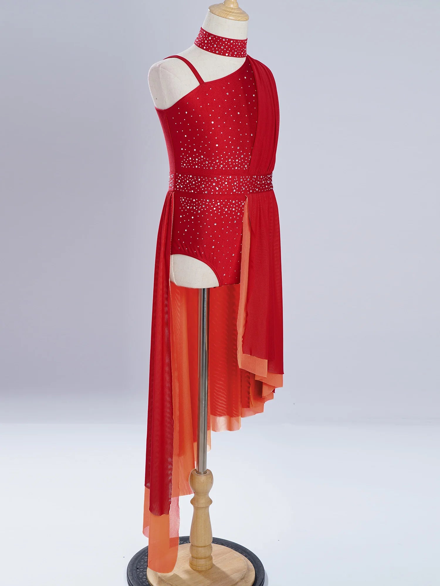 Kids Dance Dress for Girls Modern Contemporary Ballet Skirted Leotard Dress Lyrical Dance Costume Stage Ballerina Dancewear