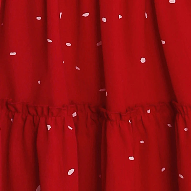 Kids Dresses for Girls 5-12T Red Lace Square Neck Polka Dot Dress New Summer Fashion Baby Princess Wedding Party Gift Costume
