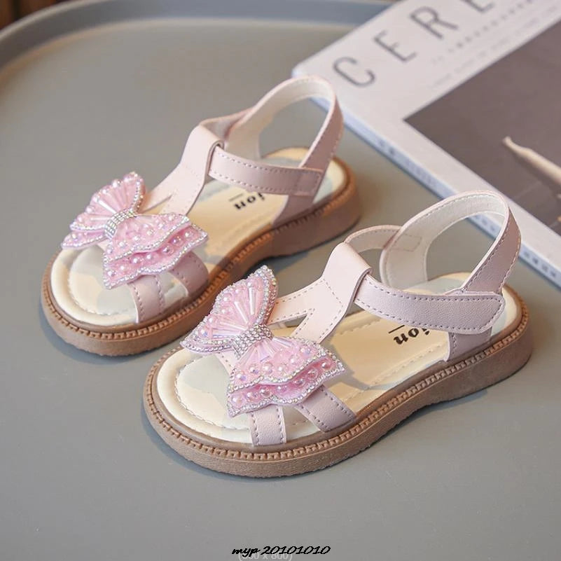 Kids Sandals Girls Shoes Summer New Arrival Beach Shoes with Slip-Resistant Soles Princess Style Sweet Exquisite 23-36 Size
