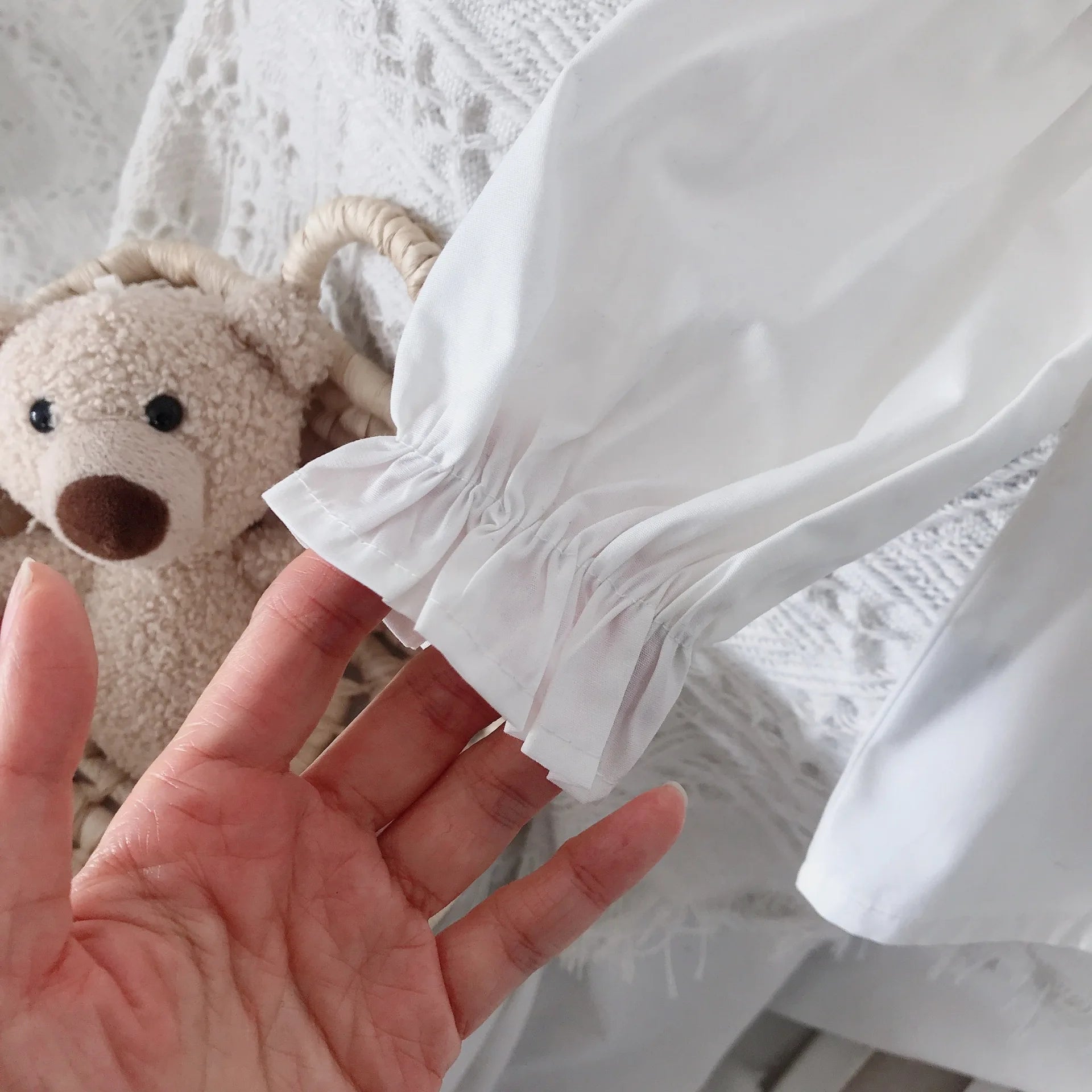 Kids School Dress White 2025 Autumn New Children Long Sleeve Blouse and School Sundress for 2 To 8 Years Old Girls Clothes Suit