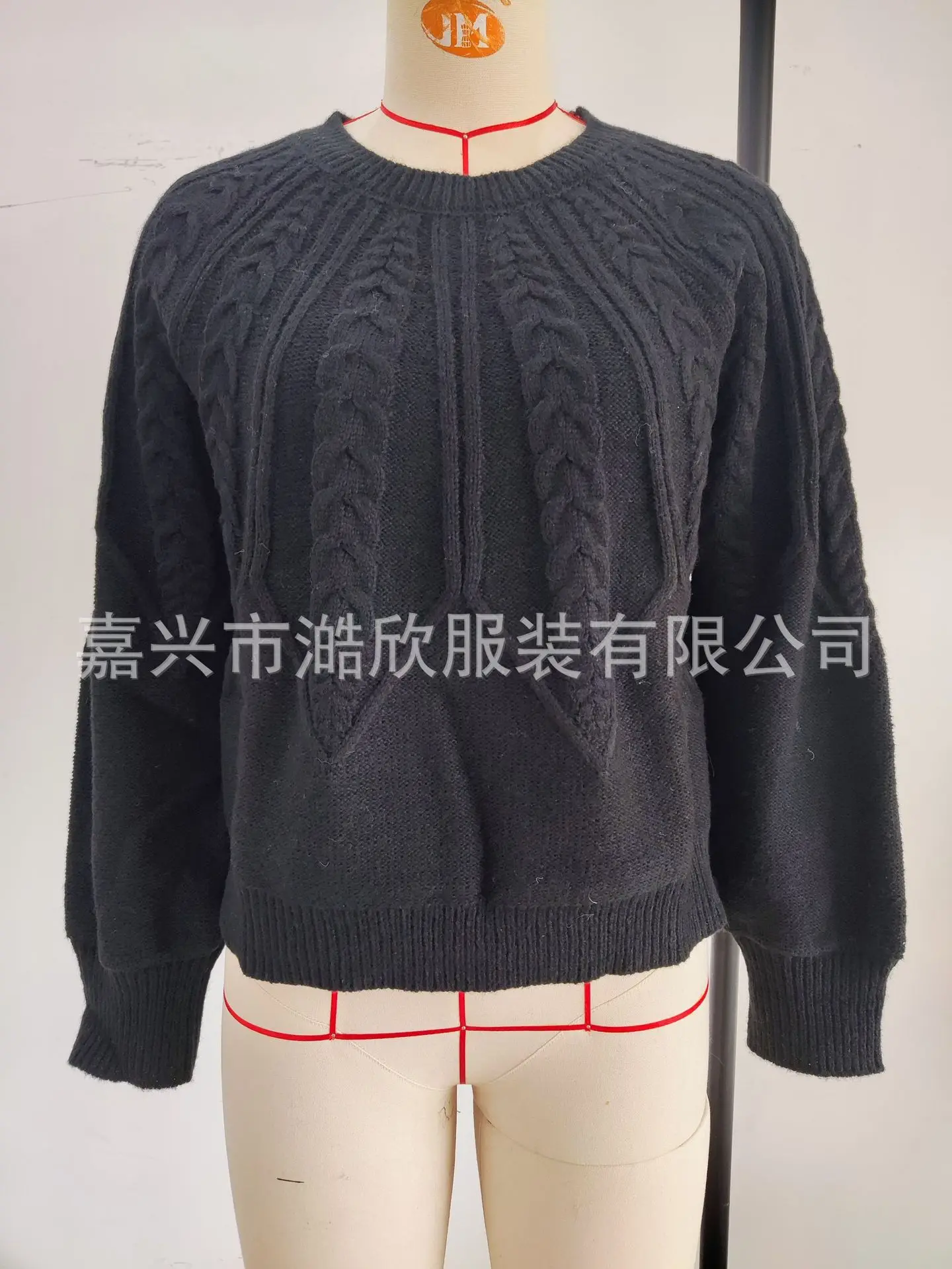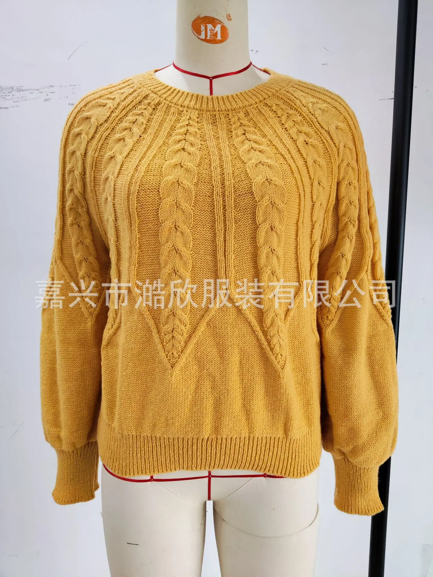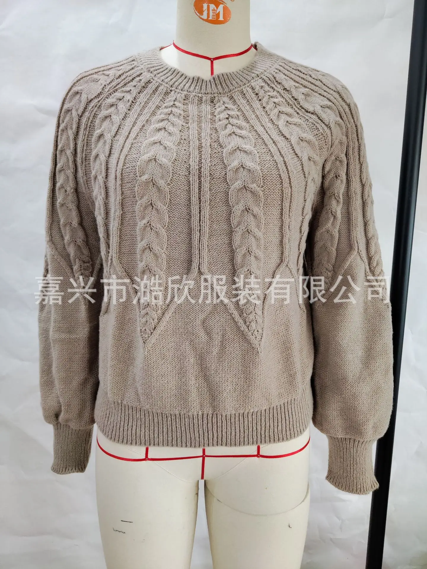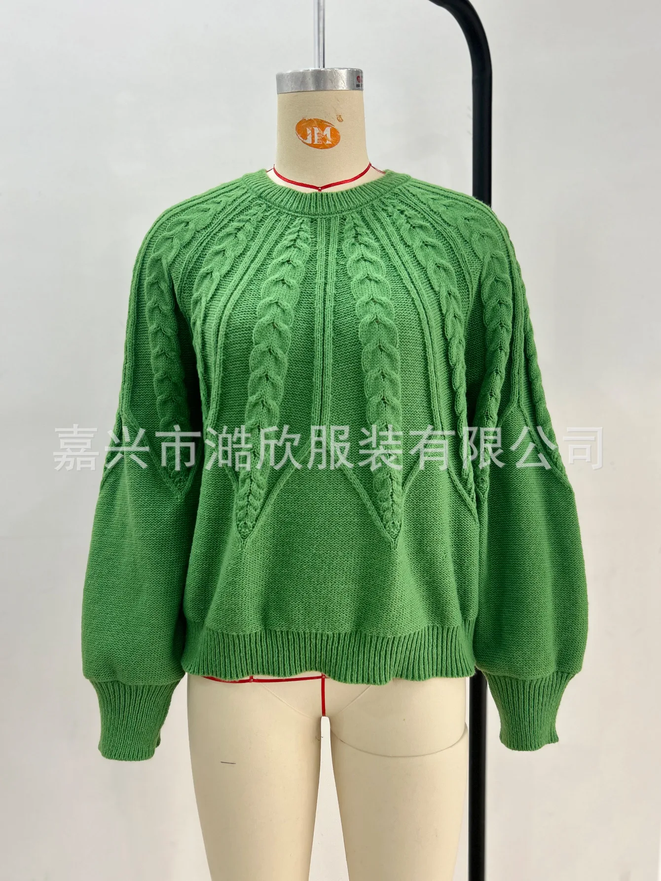 Knit Sweaters Women Loose Full Sleeve Thick Spliced Jumpers Round Neck Solid Casual Pullovers Office Lady Elegant 2025