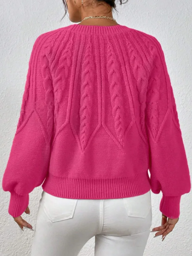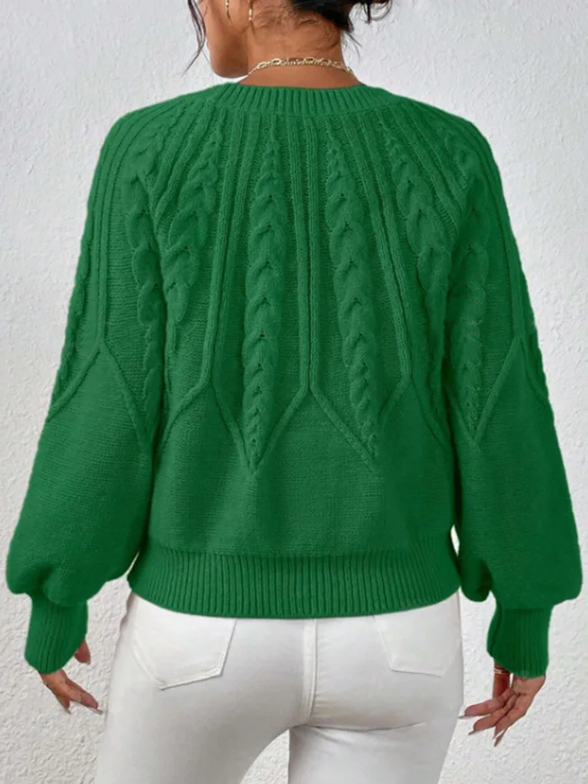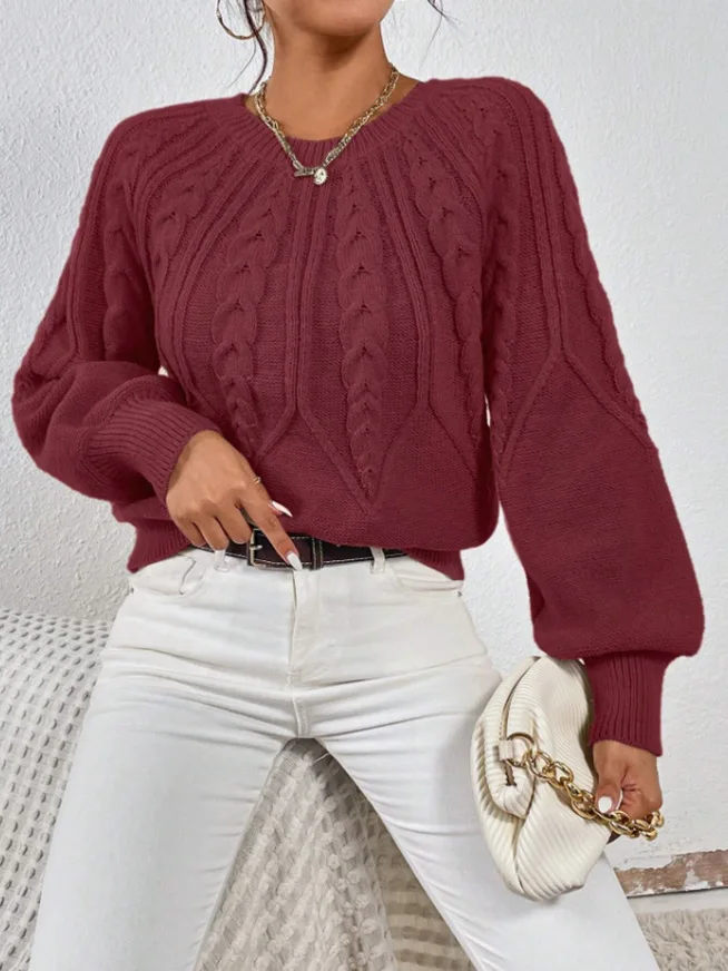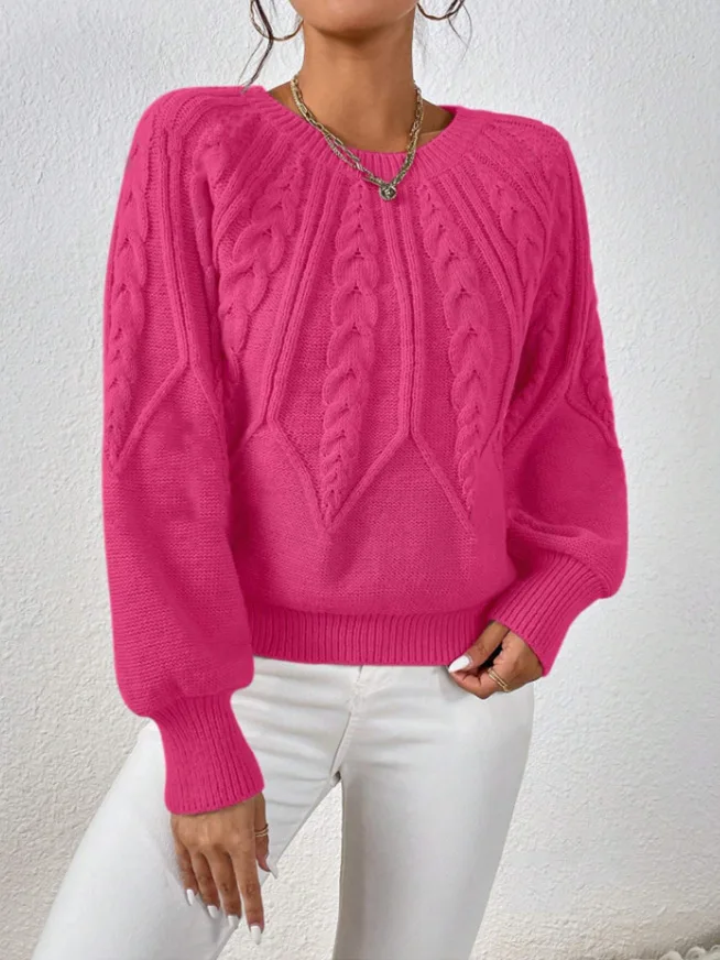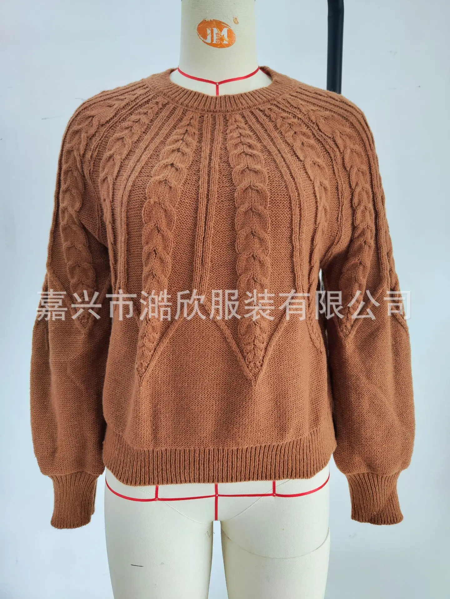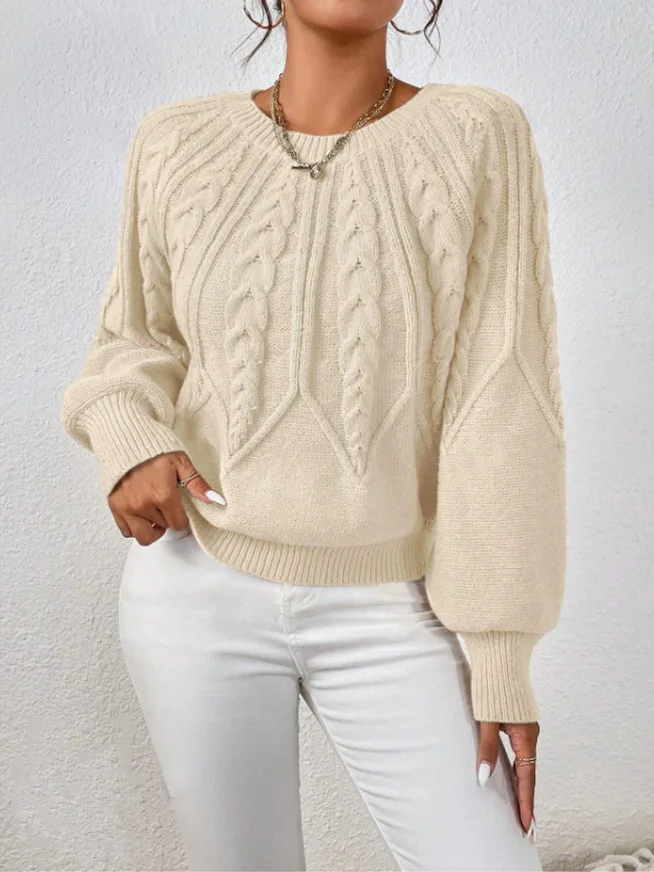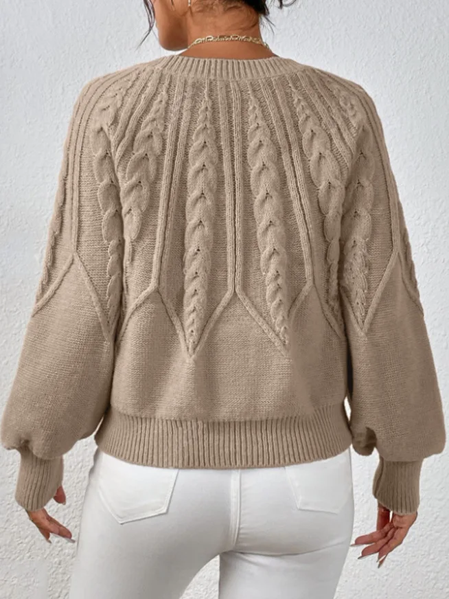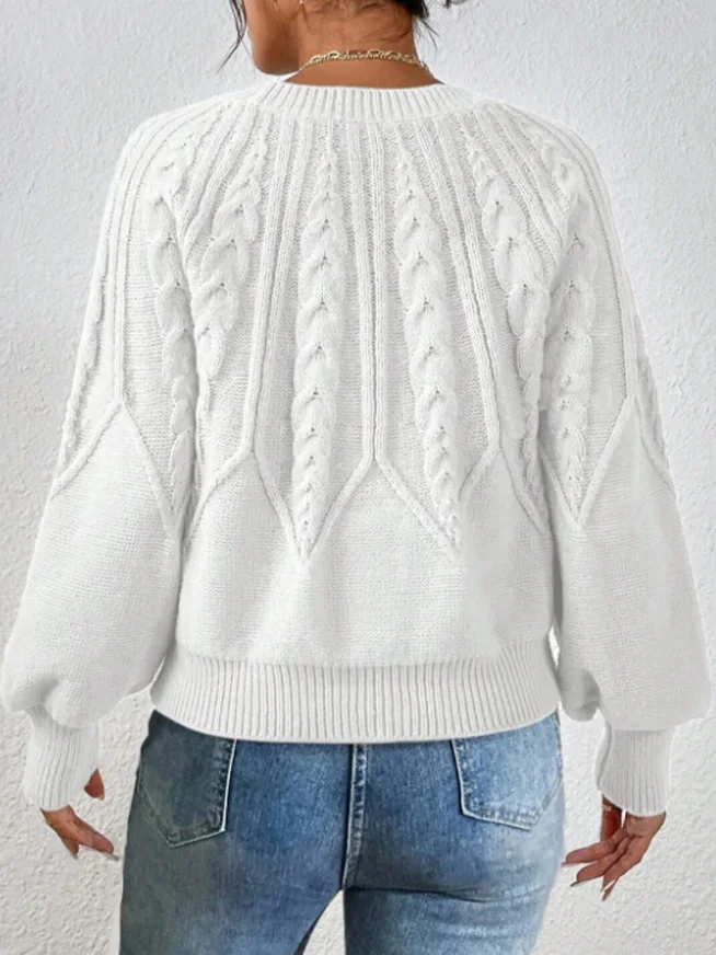 Knit Sweaters Women Loose Full Sleeve Thick Spliced Jumpers Round Neck Solid Casual Pullovers Office Lady Elegant 2025