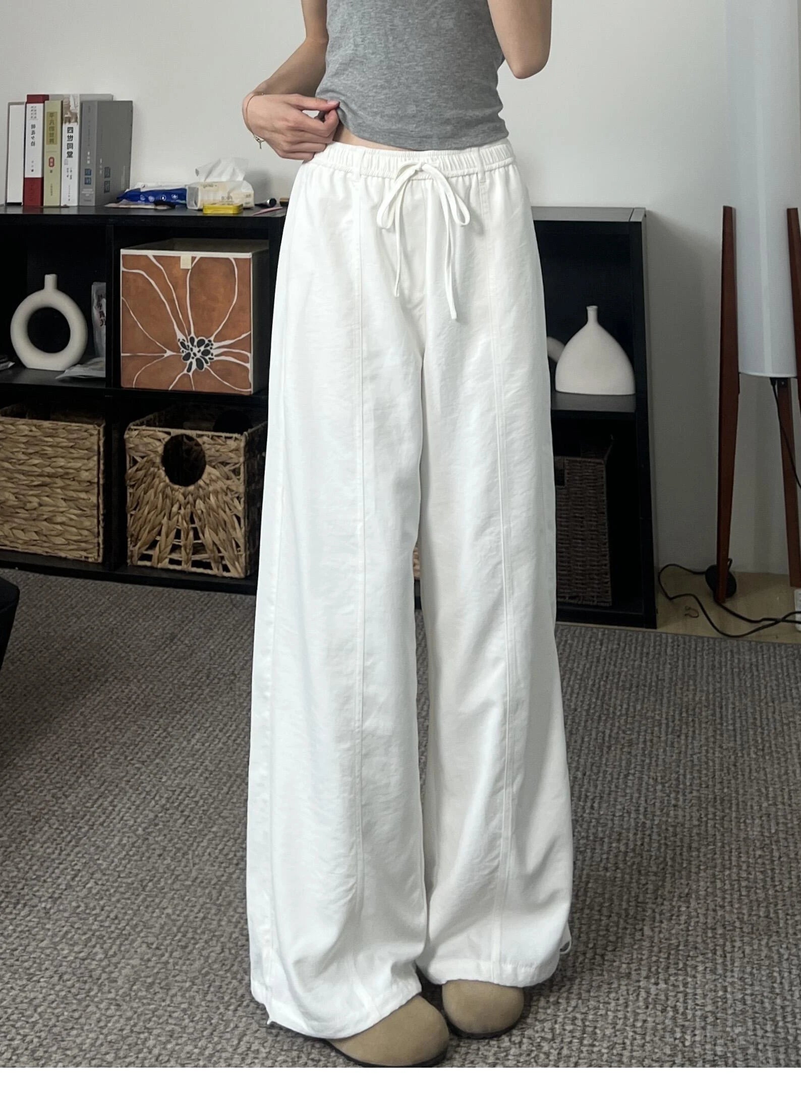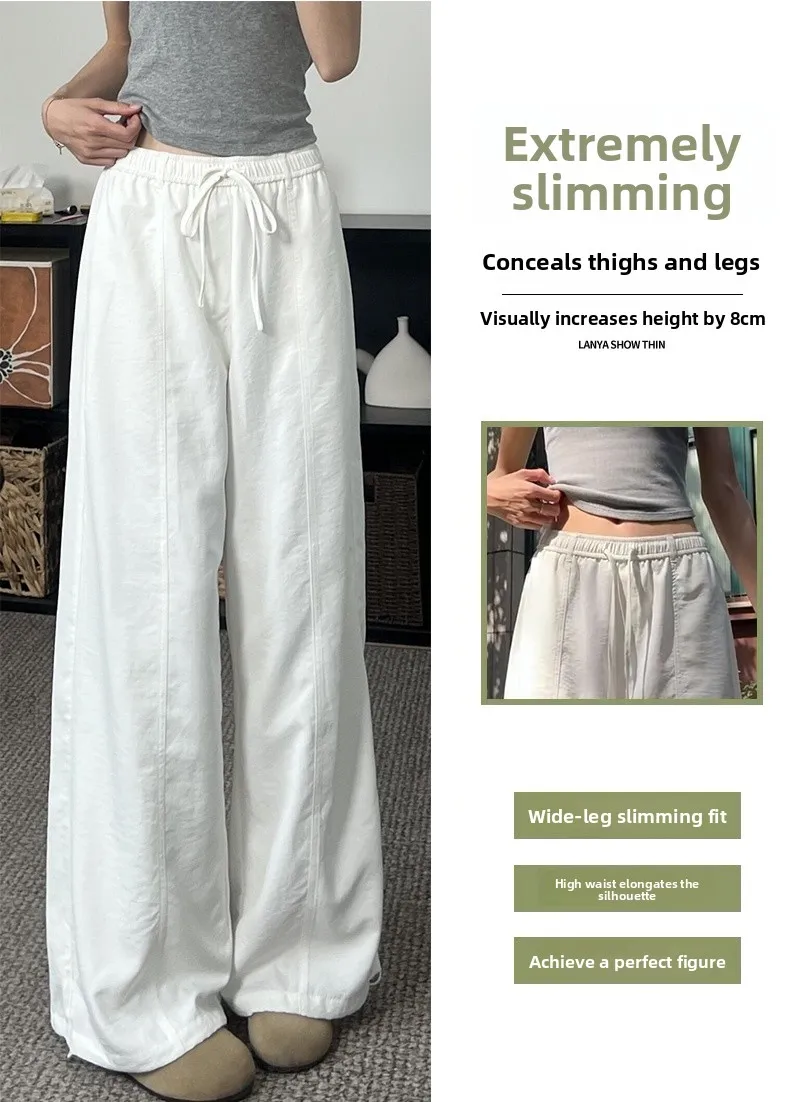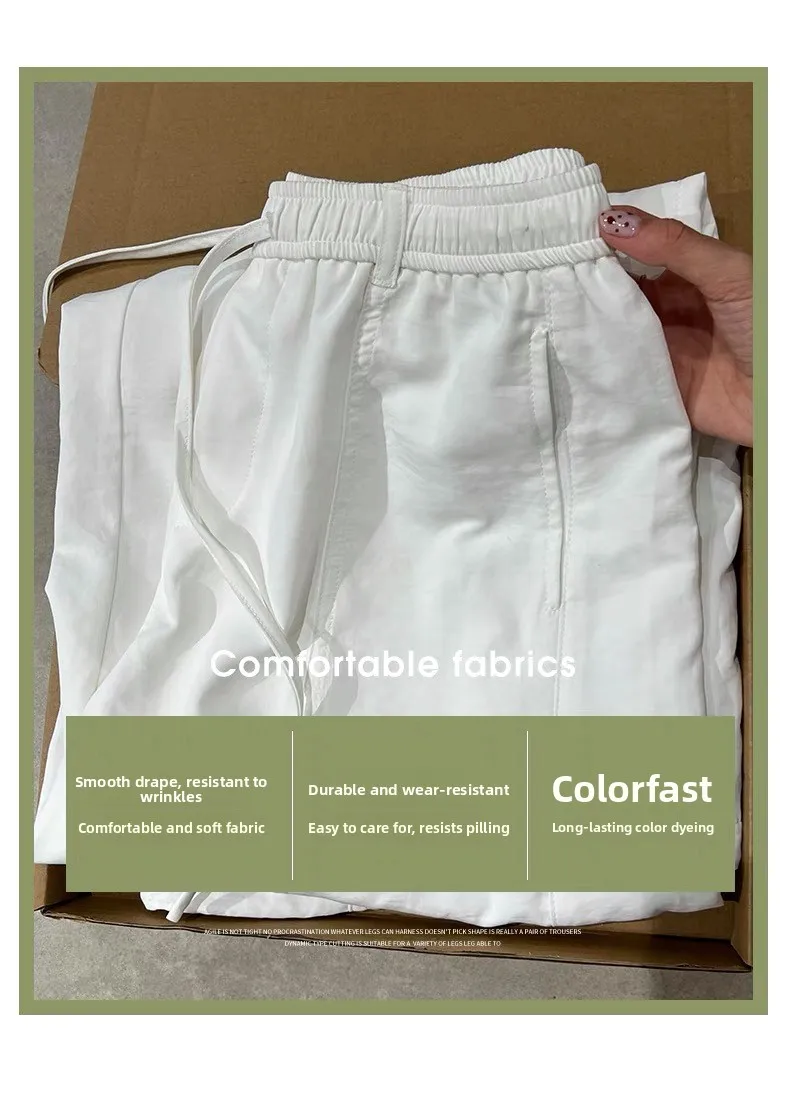 Korean Sle Simple White Straight Leg Pants Women Summer Thin High Waist Wide Leg Loose Feelings Casual Trousers