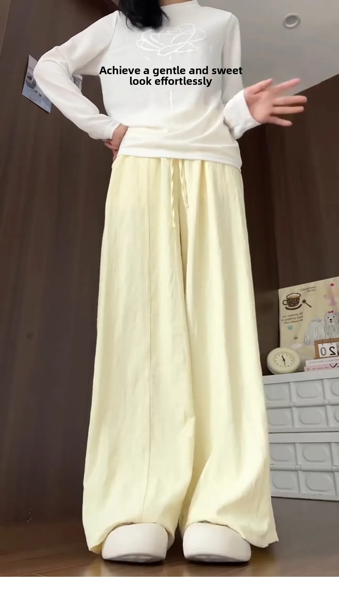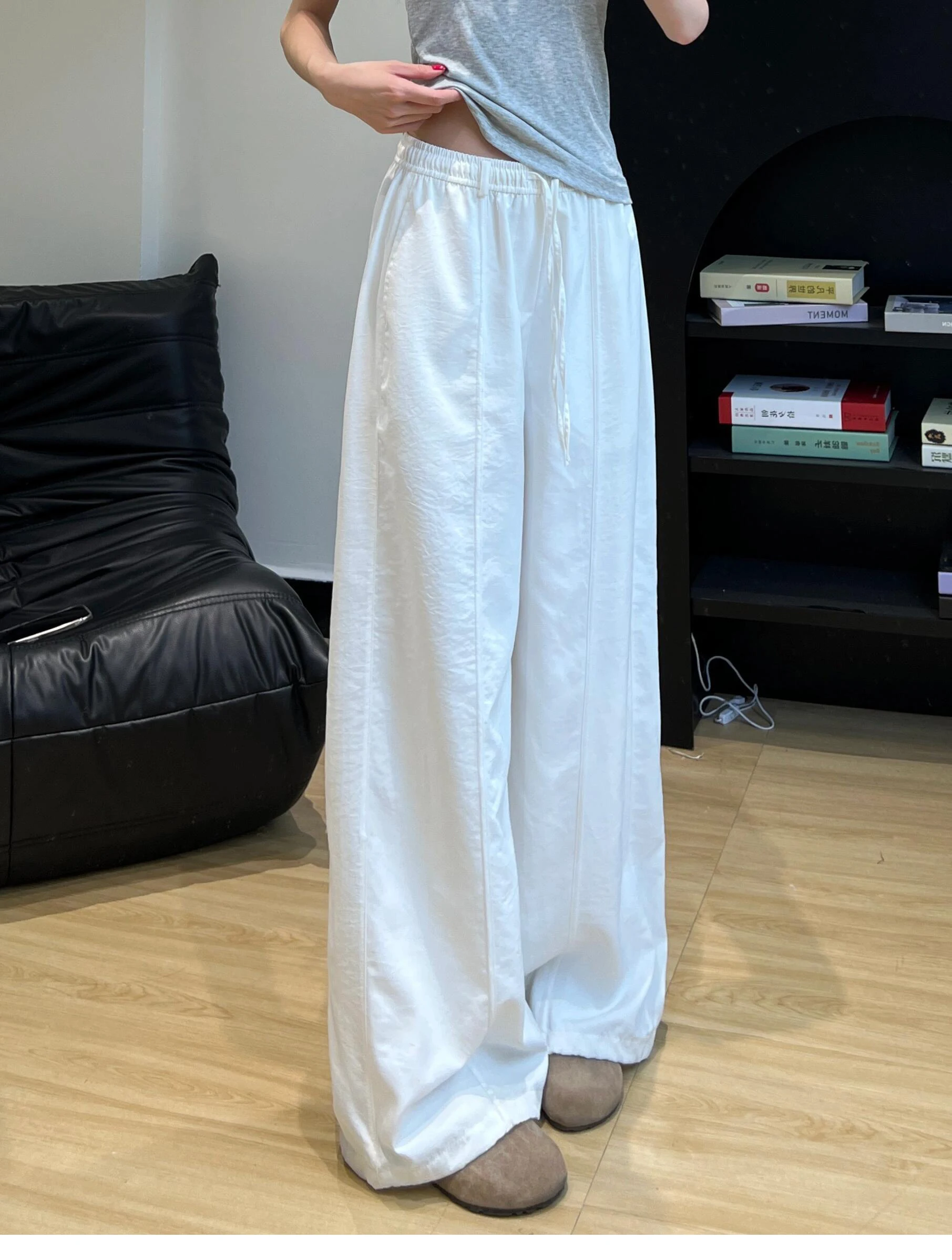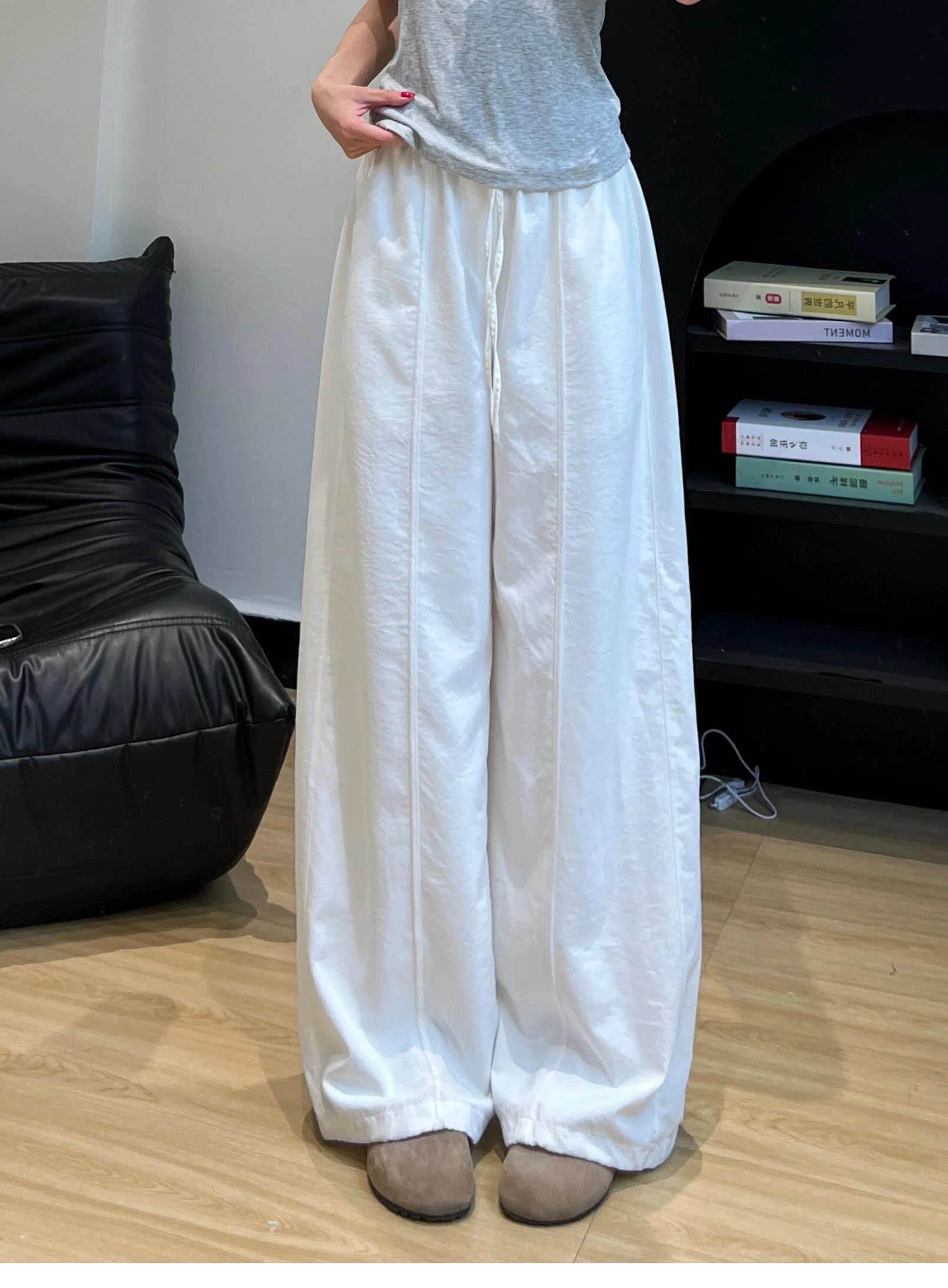 Korean Sle Simple White Straight Leg Pants Women Summer Thin High Waist Wide Leg Loose Feelings Casual Trousers