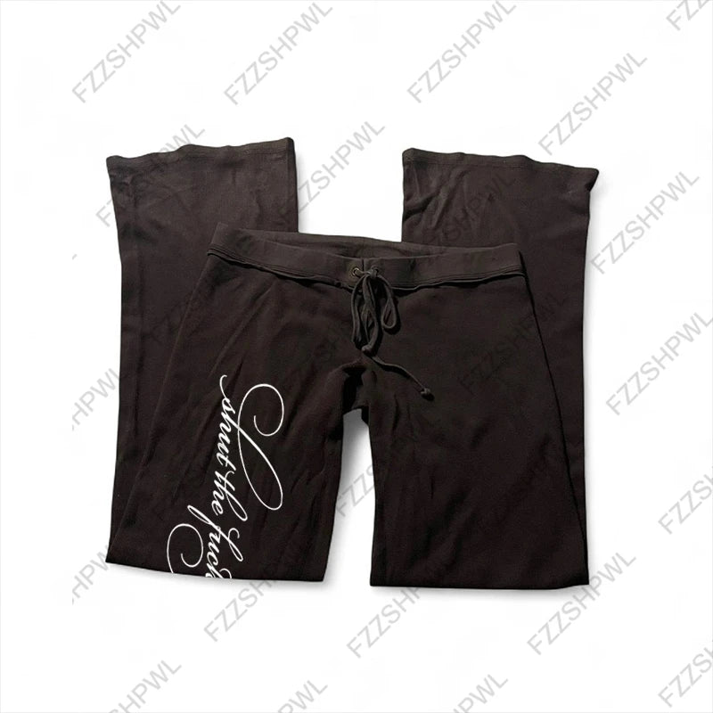 Letter Print Harajuku Hip Hop Oversized High Waist Sport Pants Women Y2K Casual Fashion Versatile Loose Straight Wide Legs