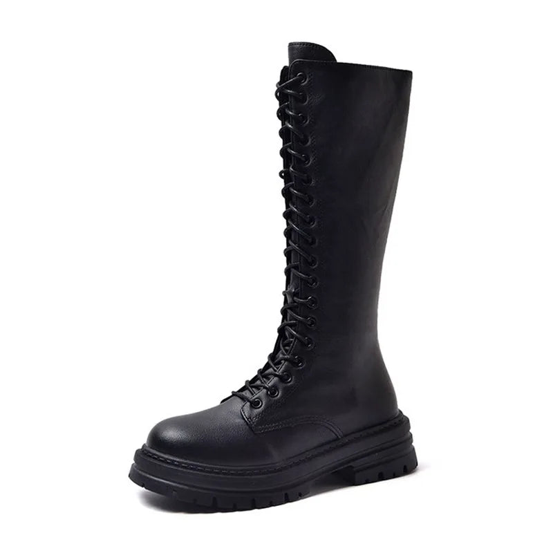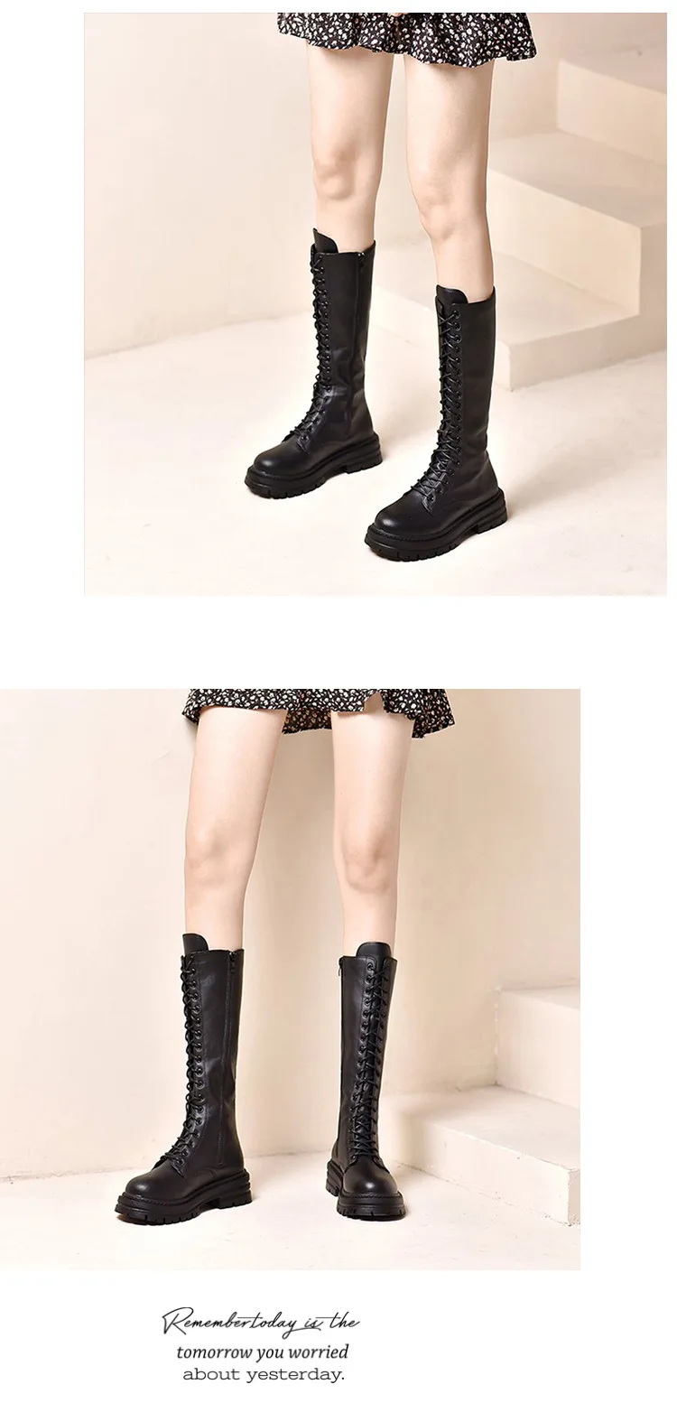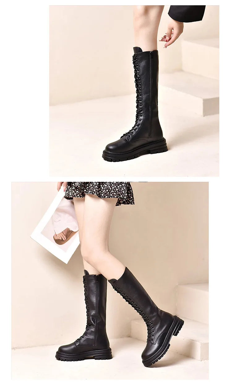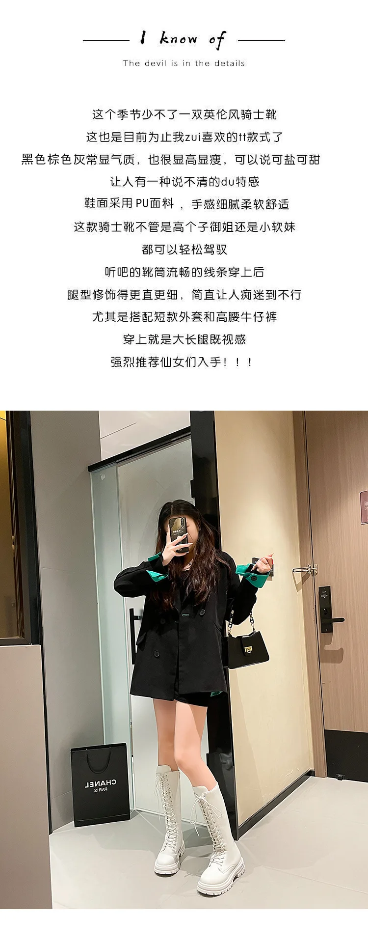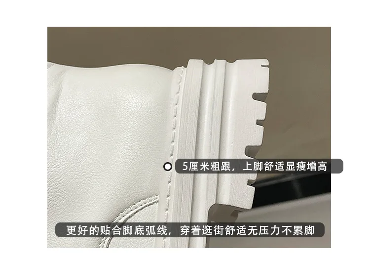 Long boots for women spring 2025 new white thick soled long boots with thick legs and high waisted straps