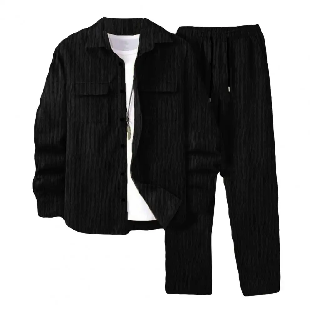 Long-sleeved Jacket Trousers Set Versatile Sportswear Outfit Men's Lapel Long Sleeve Sportwear Set with Flap for Athletes