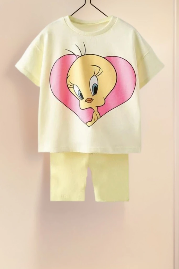 Lovely Toddler Girls' 2 Knit Sets Tweety Bird And Minnie Mouse Printed Tops + Shorts Cartoon Print Children Costume Cotton Suit