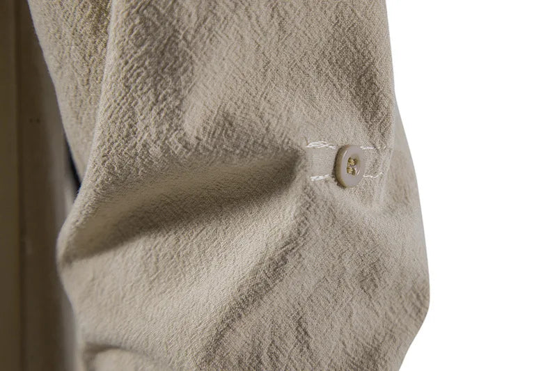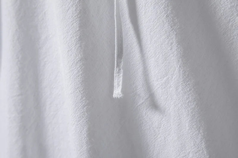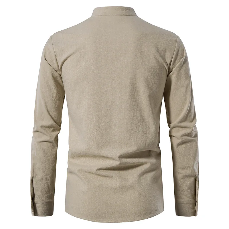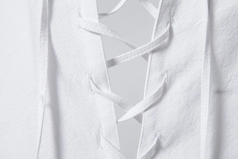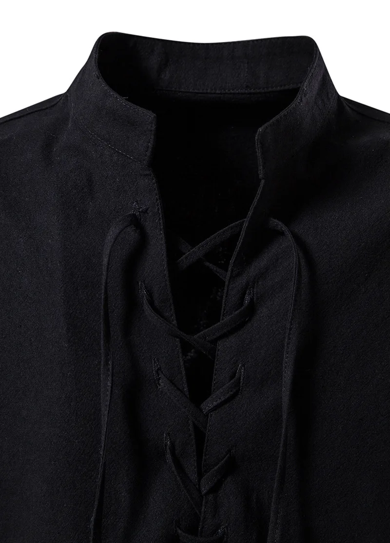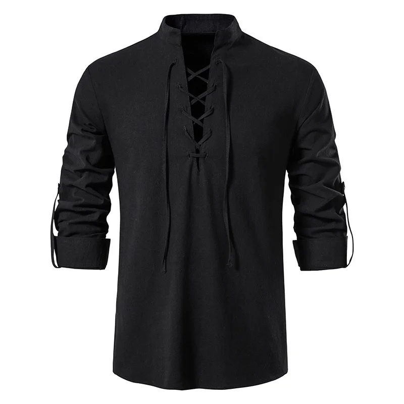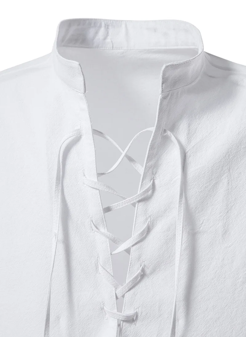 Men Cotton Linen Lace Up Long Sleeve Solid Blouse Shirts Summer Male Solid Loose Pullover Blouse Tops ARJ-A1776