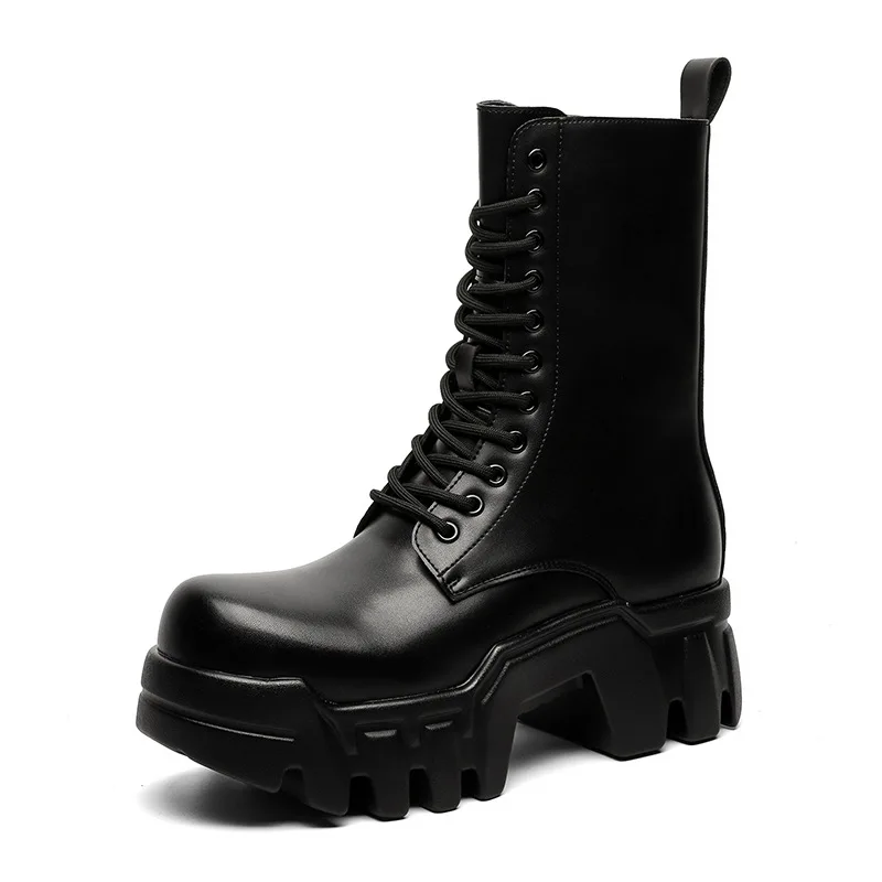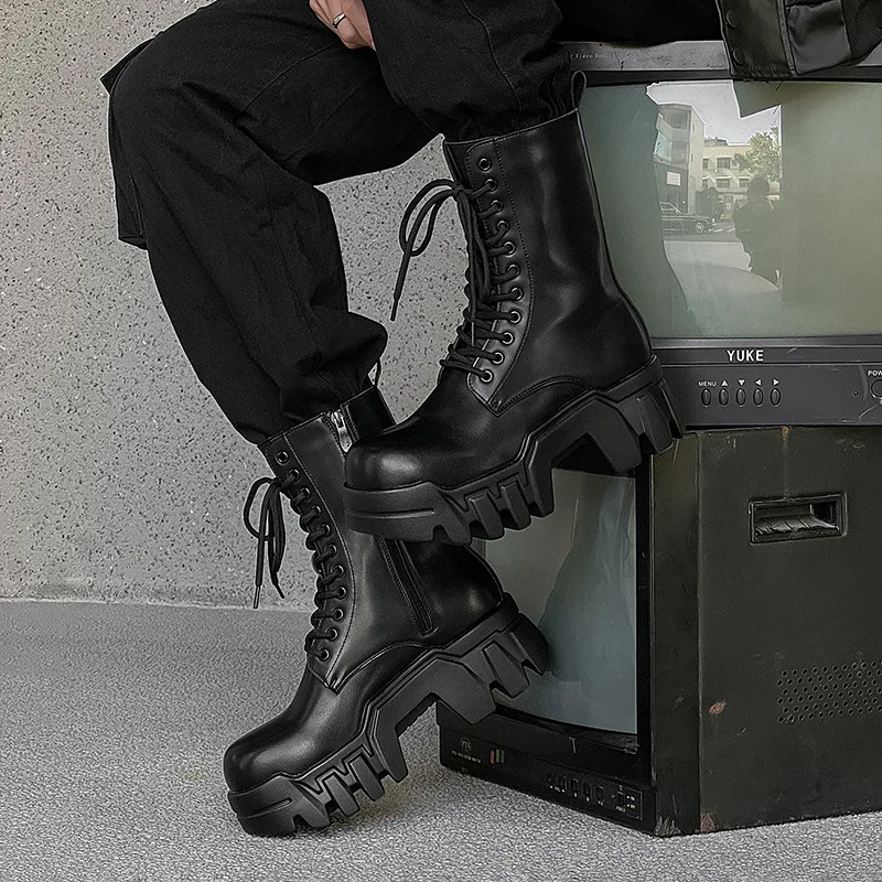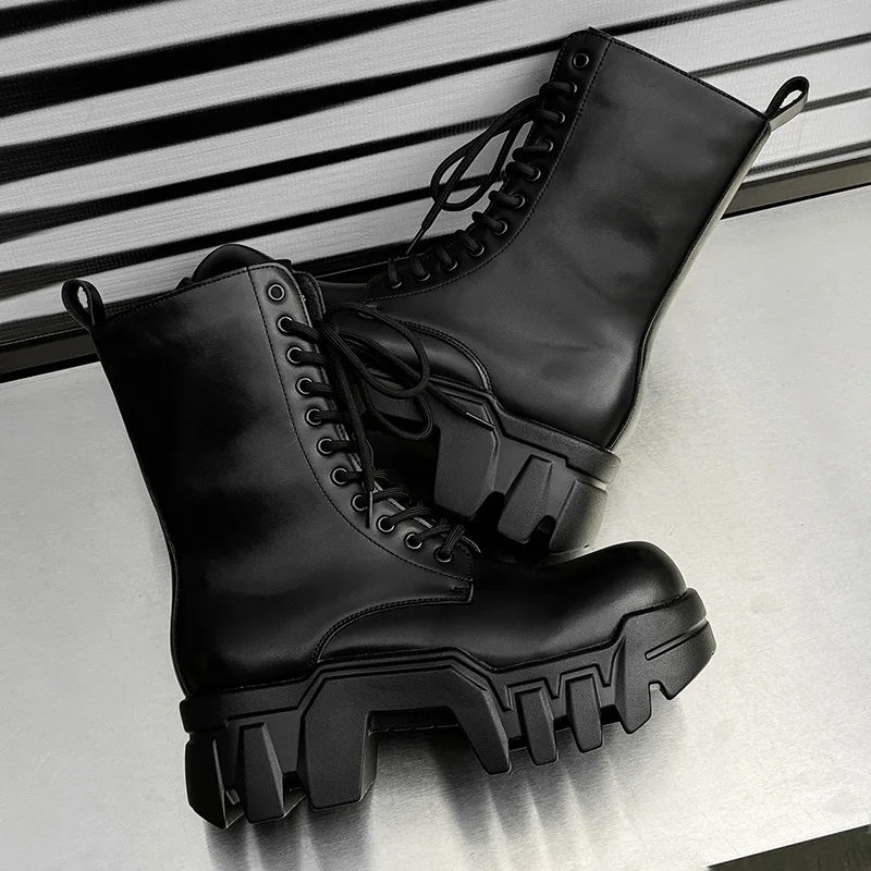 men fashion punk gothic platform boots designer original leather shoes cowboy high boot black stylish long motorcycle botas mans