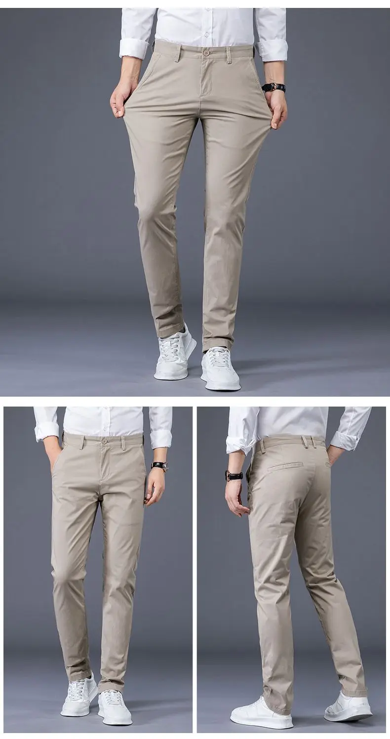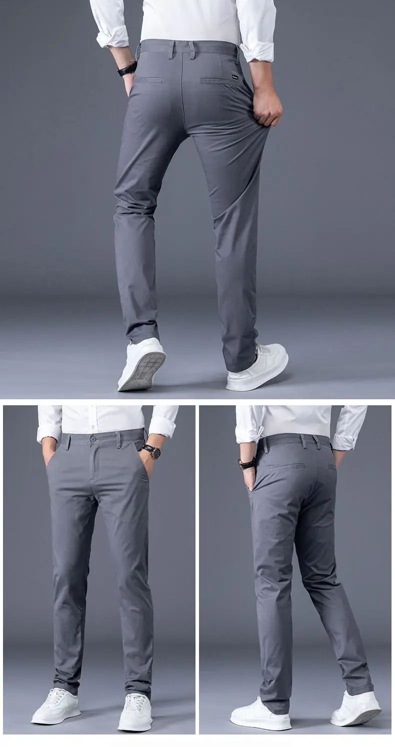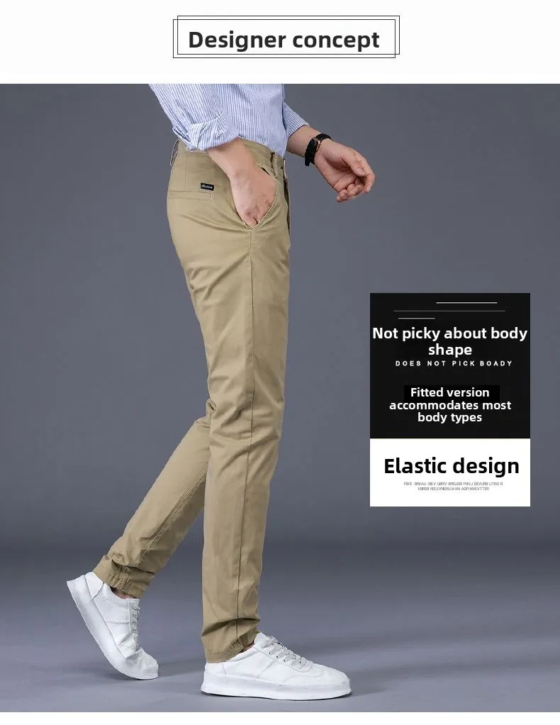 Men's Business Spring and Autumn Men's Casual Pants High-end Cotton Straight Stretch New Long Pants Slim Fleece PantsPlush