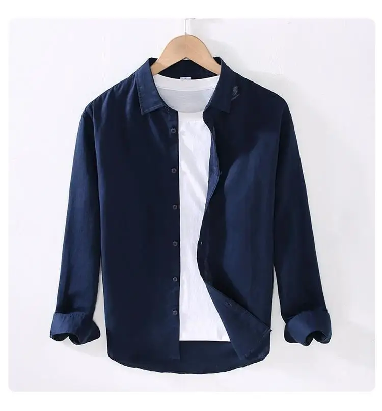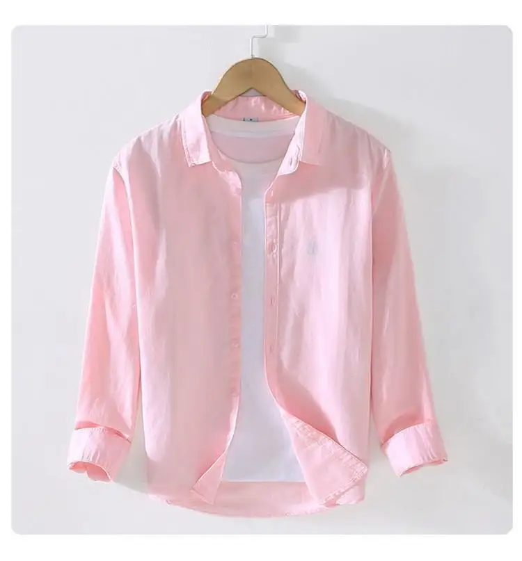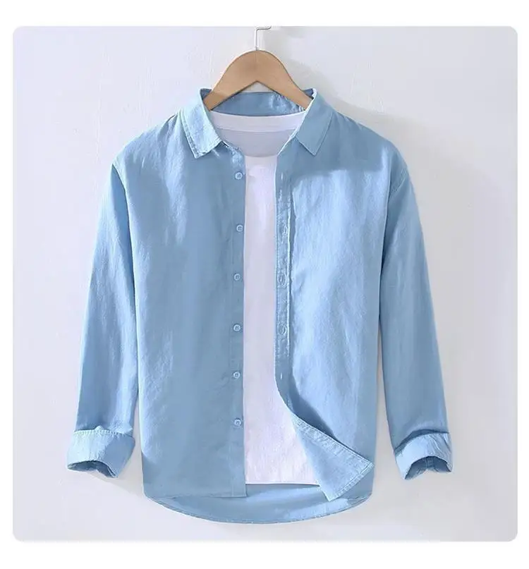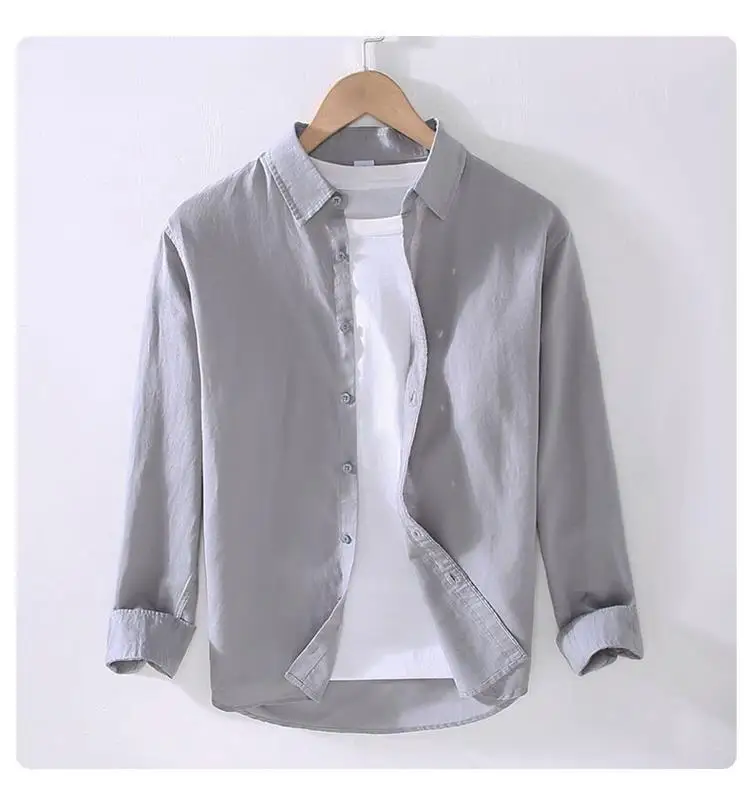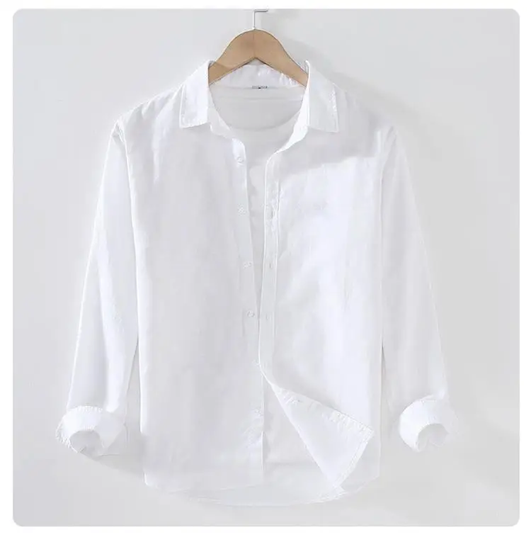 Men's Casual Loose Fit Long Sve Linen irt Thin Cotton Linen Material Summer Faion Inner Wear White Spring Summer Top