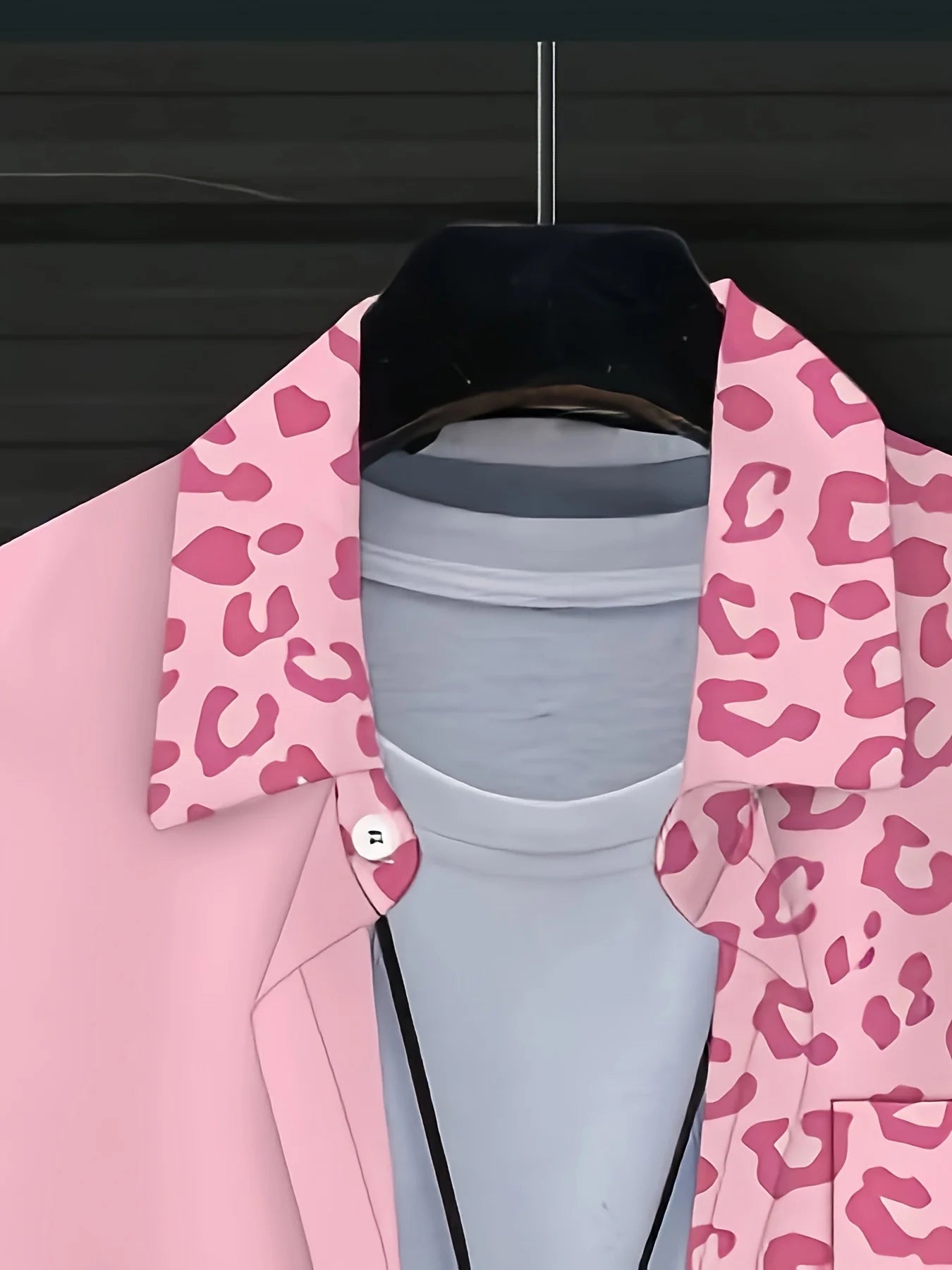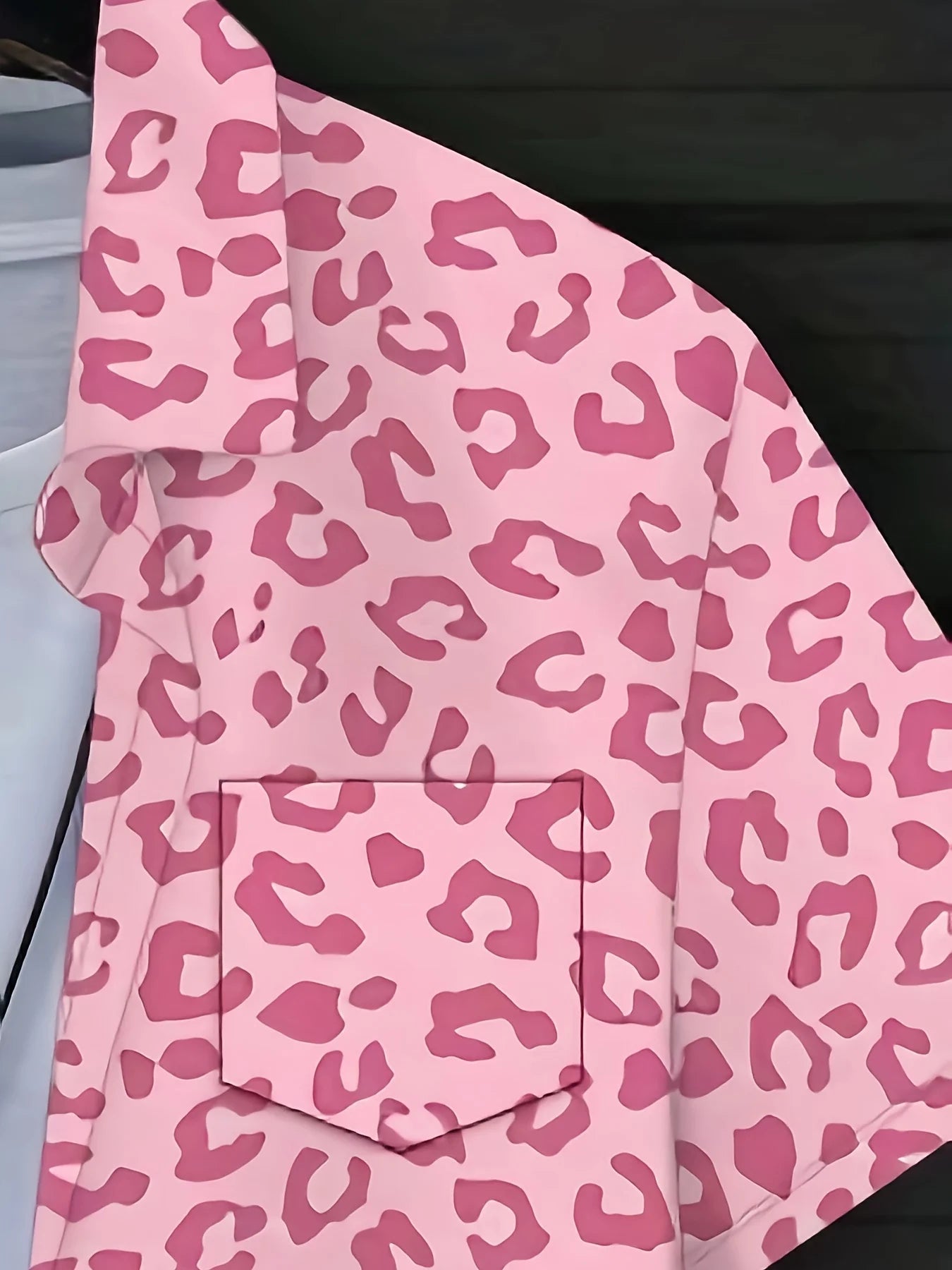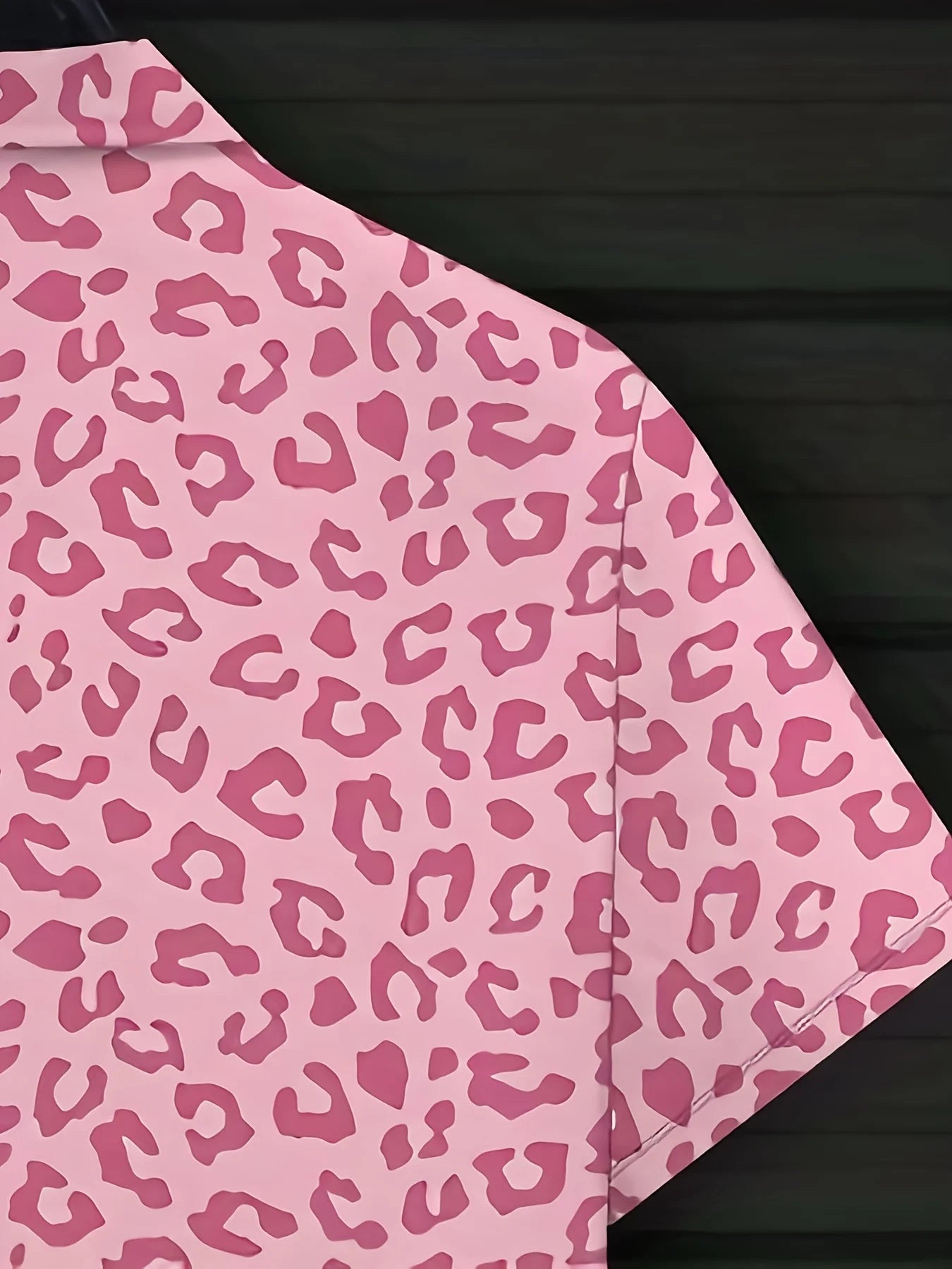 Men's Hawaiian Shirt - Cartoon and Leopard Print Short-sleeved, with a Pocket on the Chest, Machine Washable, Regular Fit, Summe