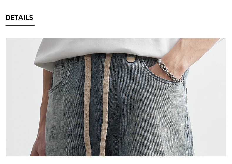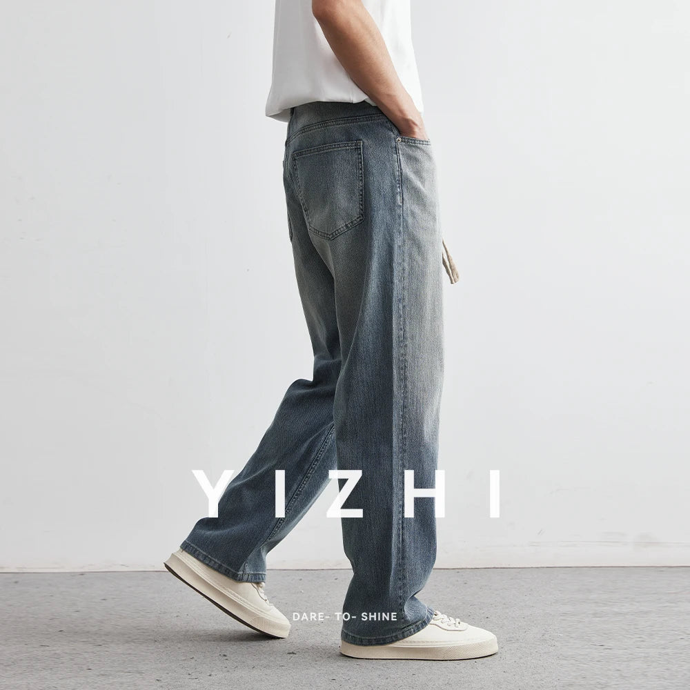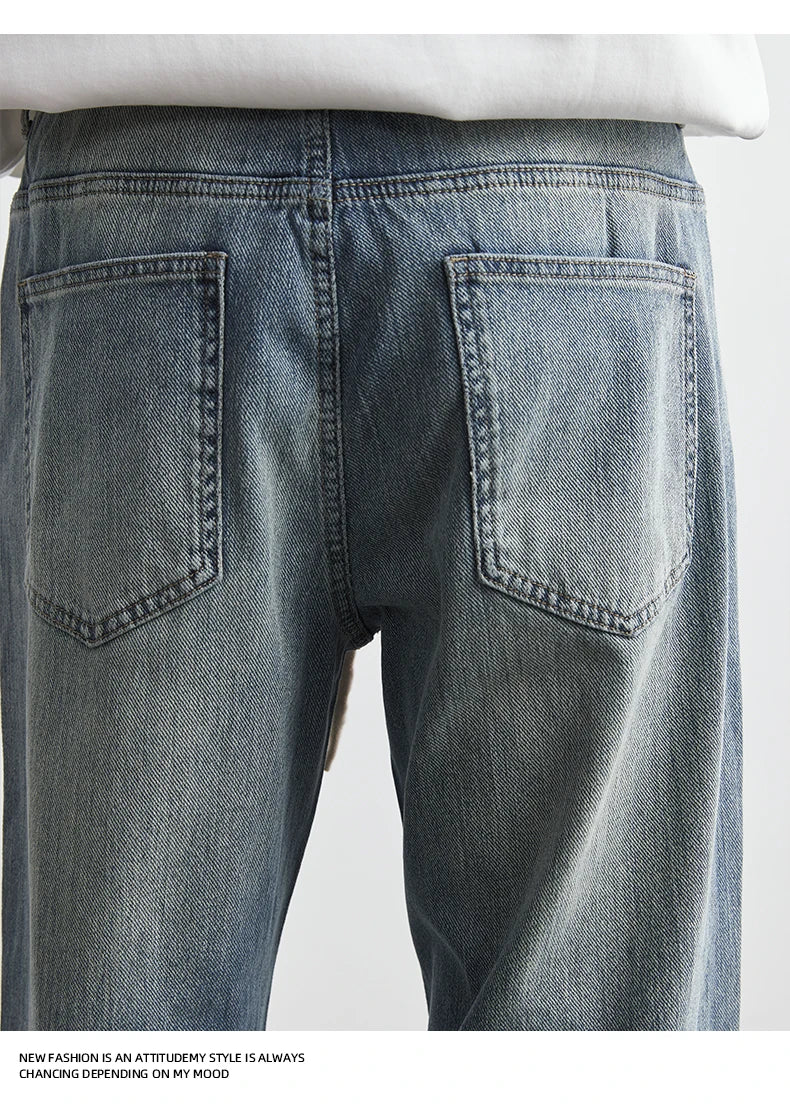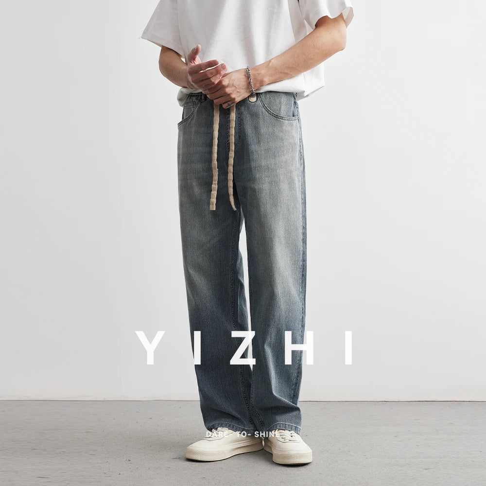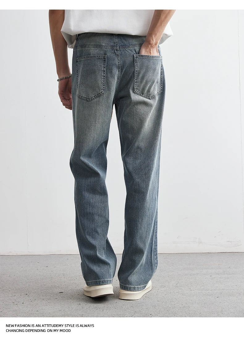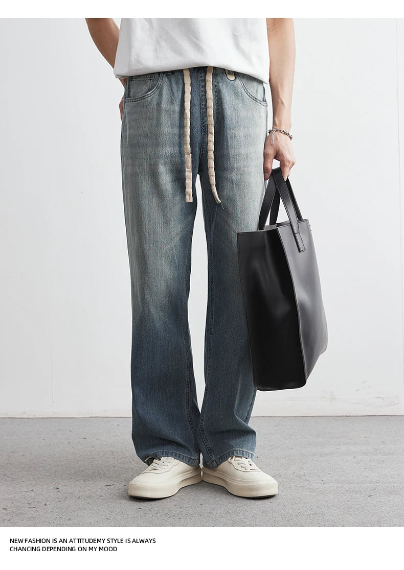 Men's Japanese Retro Jeans 2025 Summer New Fashion Personality Straight Elastic Waist Straight Jeans Loose Casual Jeans Pants