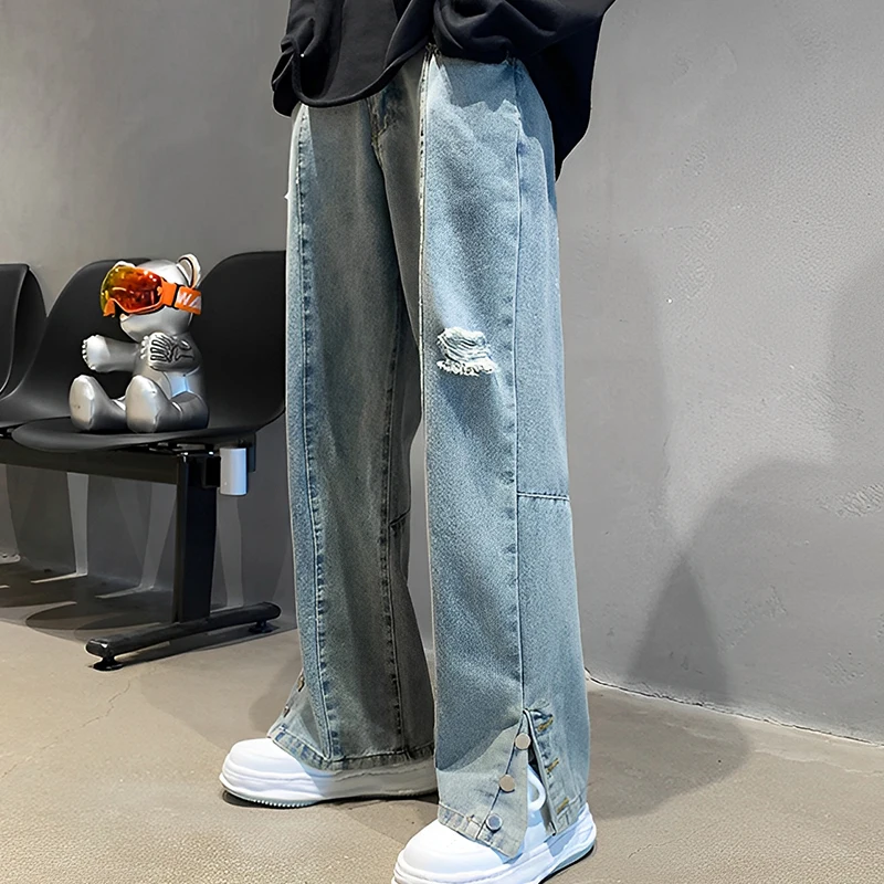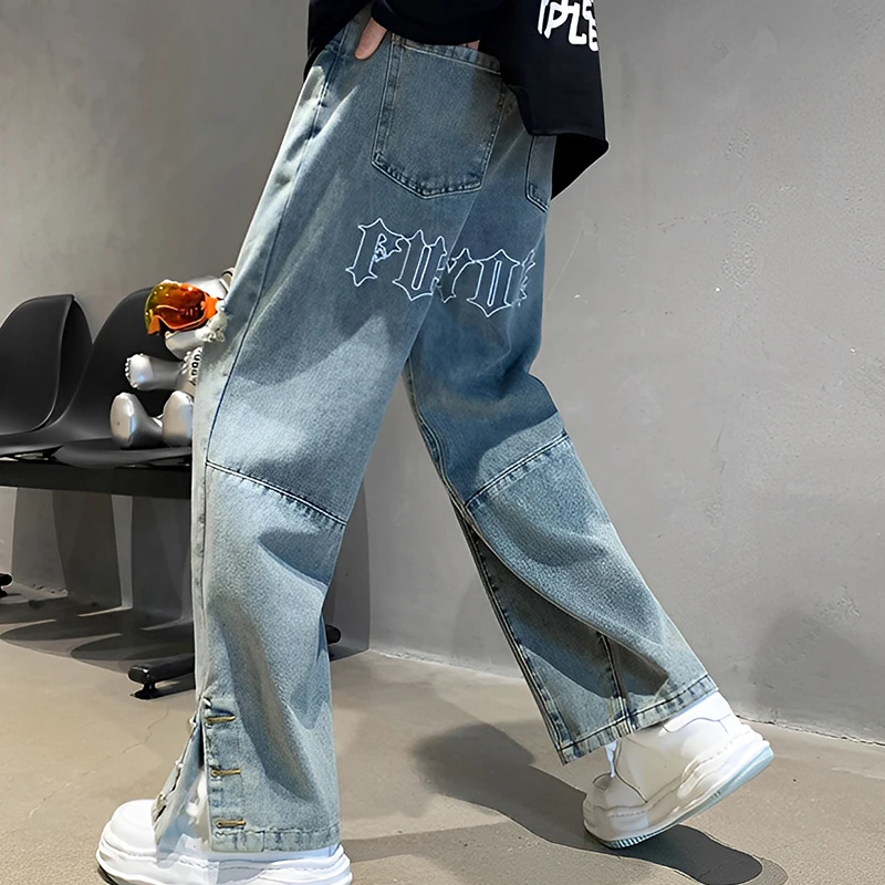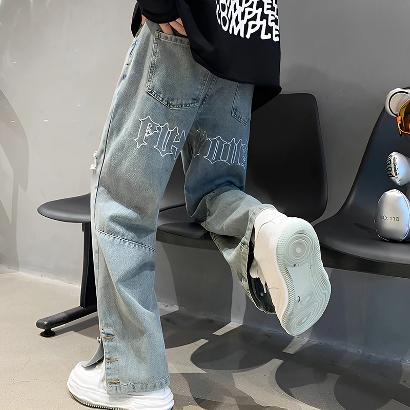 Men's Letter Embroidered Hip Hop Loose Jeans Casual New Broken Holes Streetwear Straight Denim Trousers Male Y2K Baggy Jeans