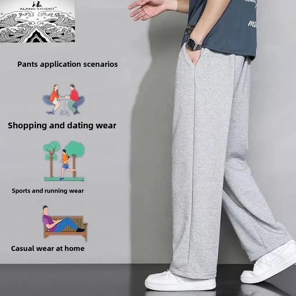 Men's Loose Fit Straight Leg Sweatpants Casual Plus Size Cotton Pants For Autumn Winter Spring Summer Lightweight