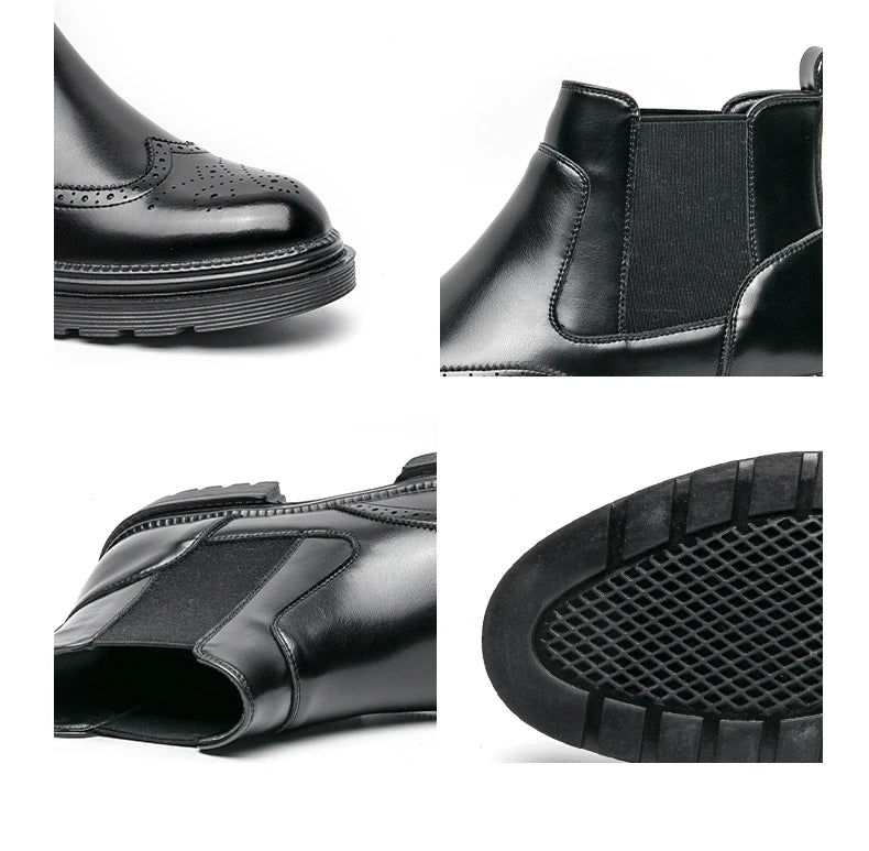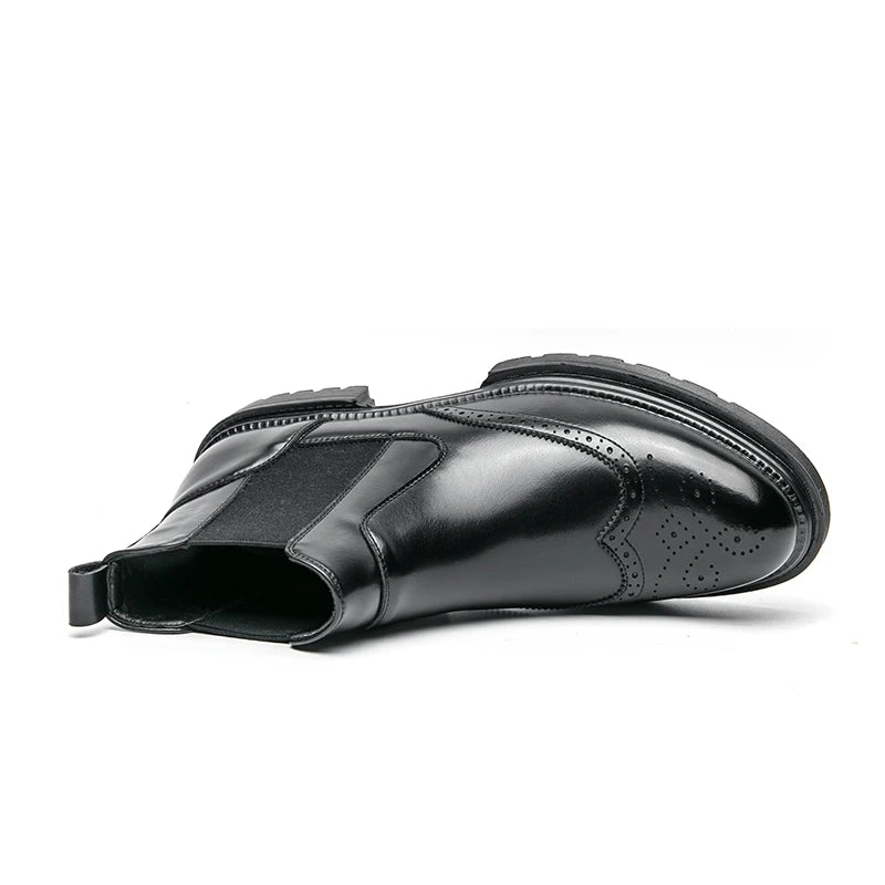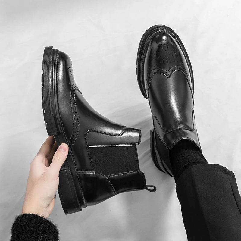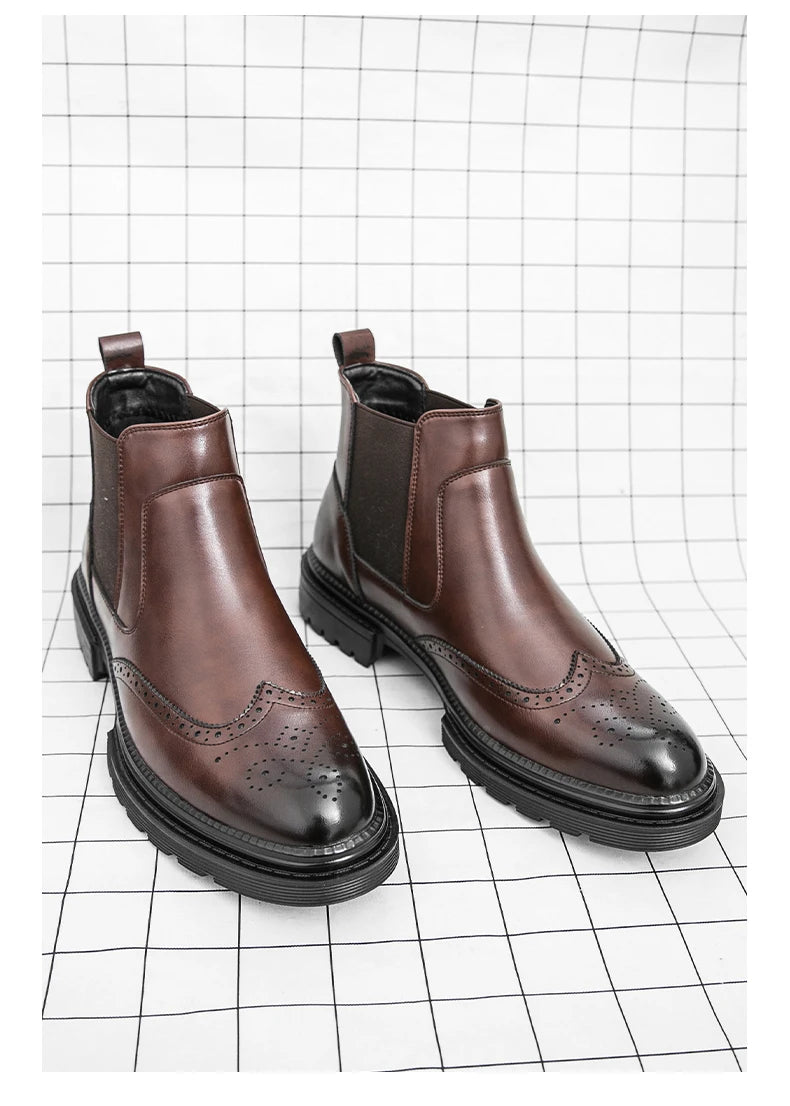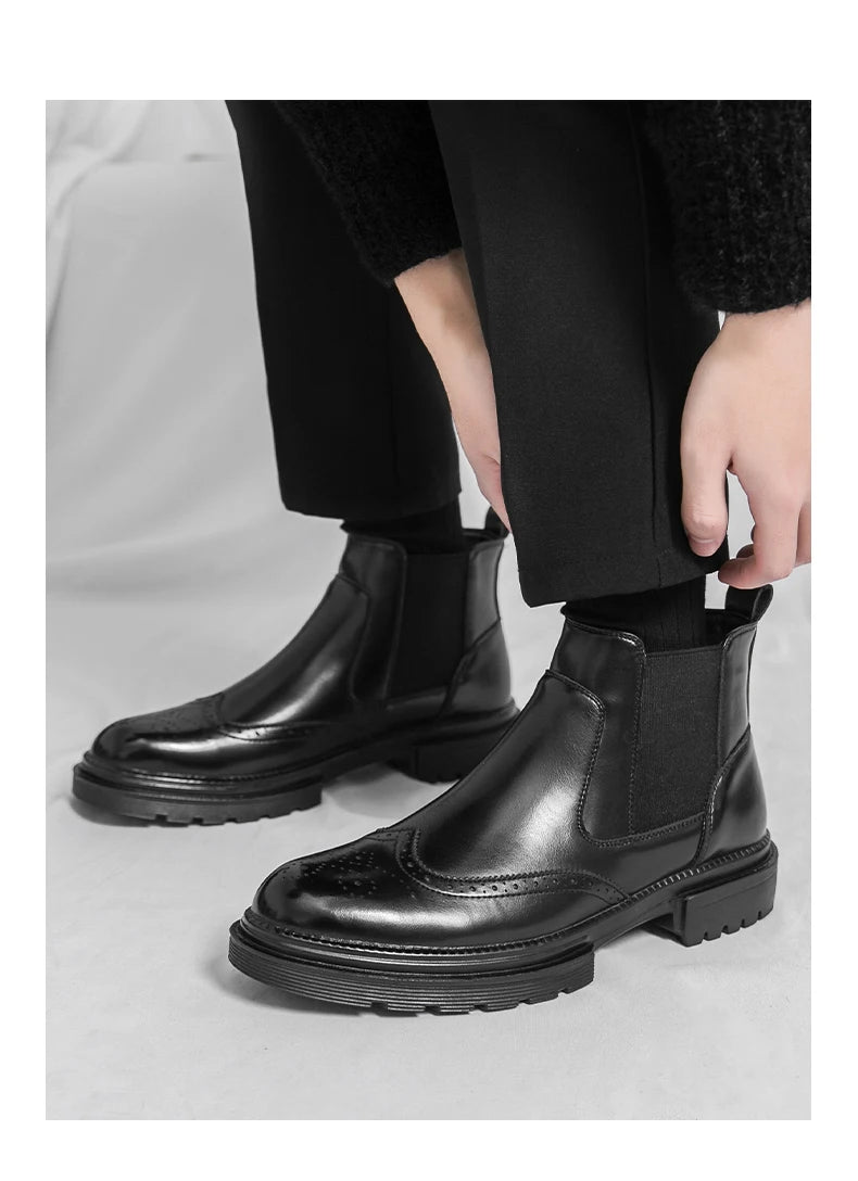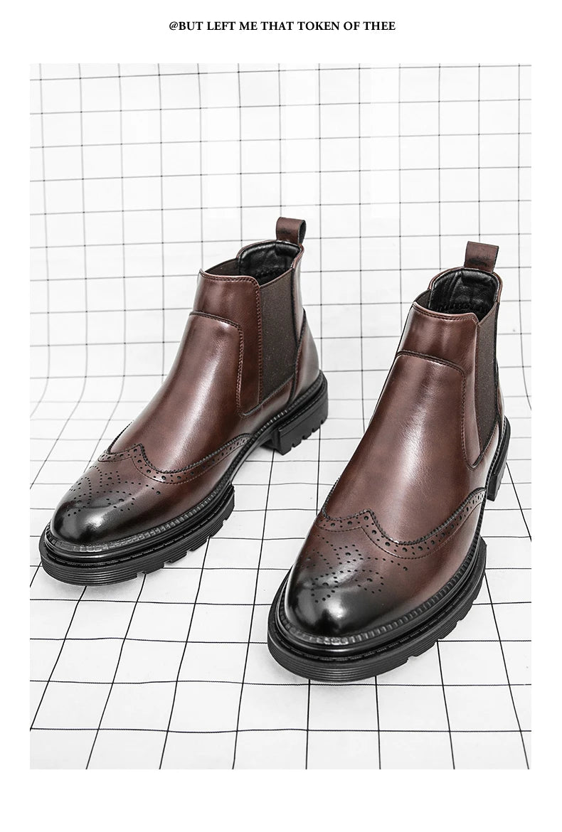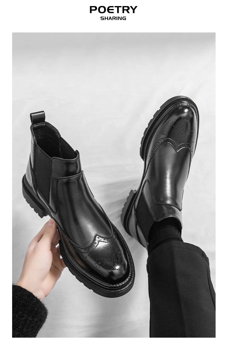 Men's riding boots British-style retro brogue carved high-top leather shoes men's casual leather shoes thick-soled leather boots