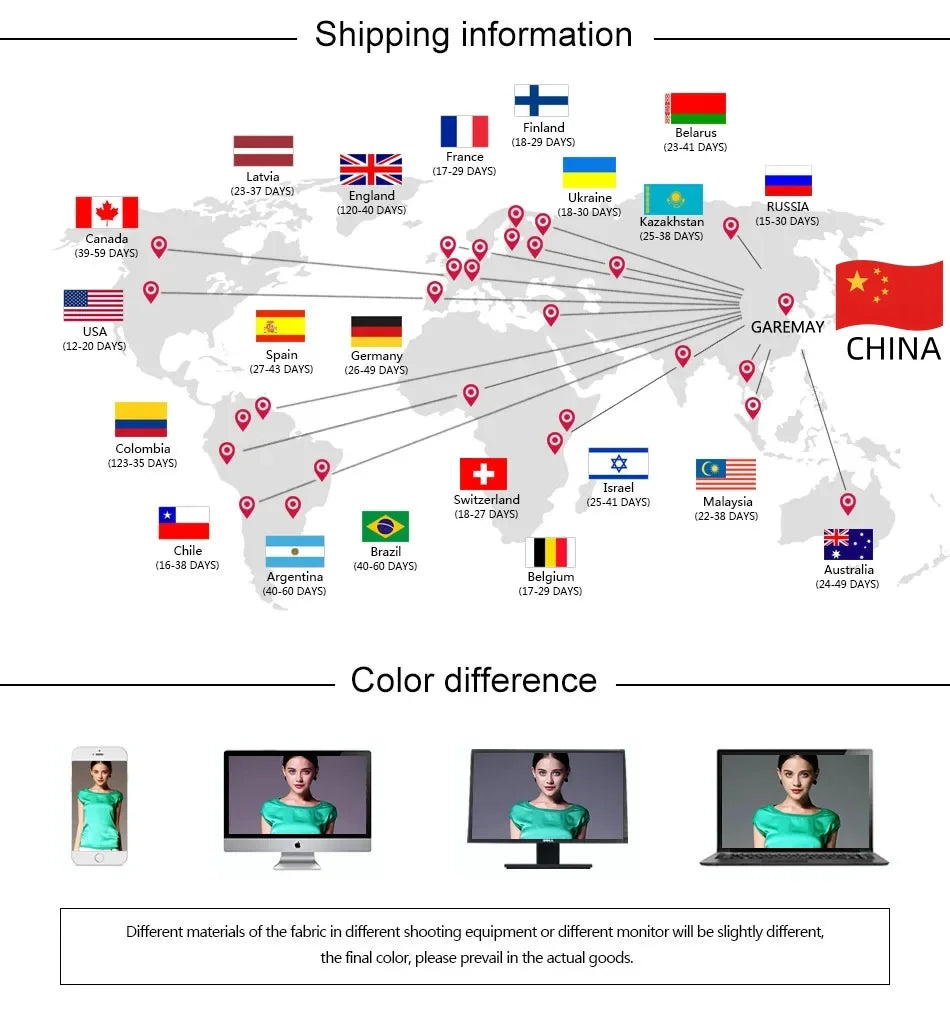 Note: The sizes are in European and American measurements.