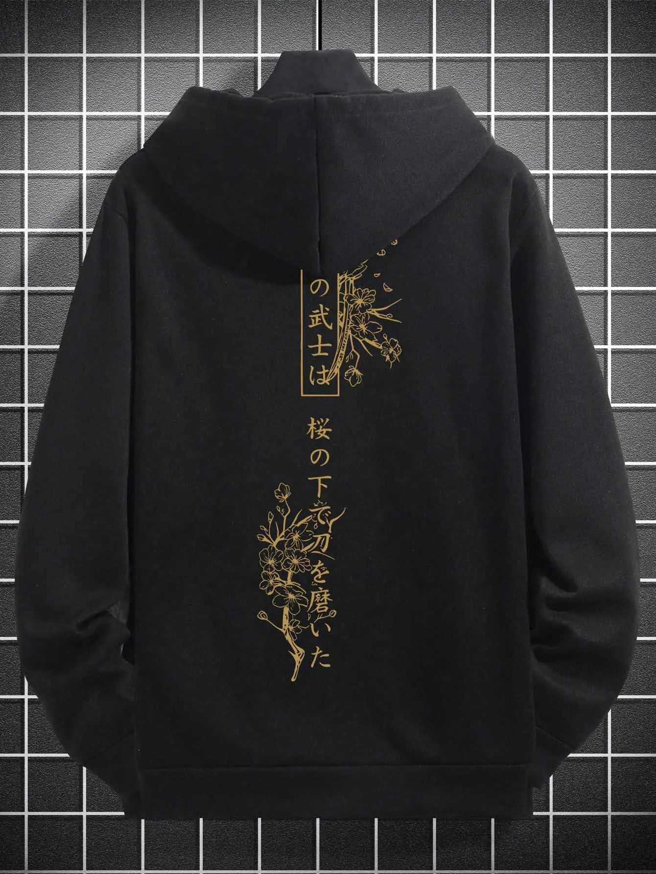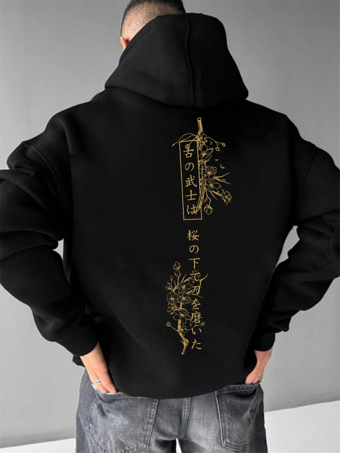 Men's stylish hoodie, 100% polyester fabric, loose fit, Japanese graphic print, stylish casual pullover