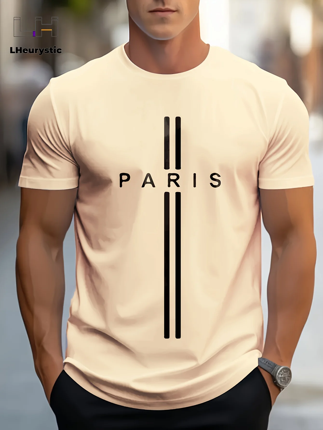 Men's summer loose size PARIS letter Graphic printed slim fit casual sports round neck short sleeved T-shirt top