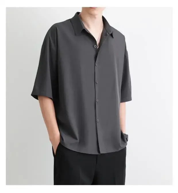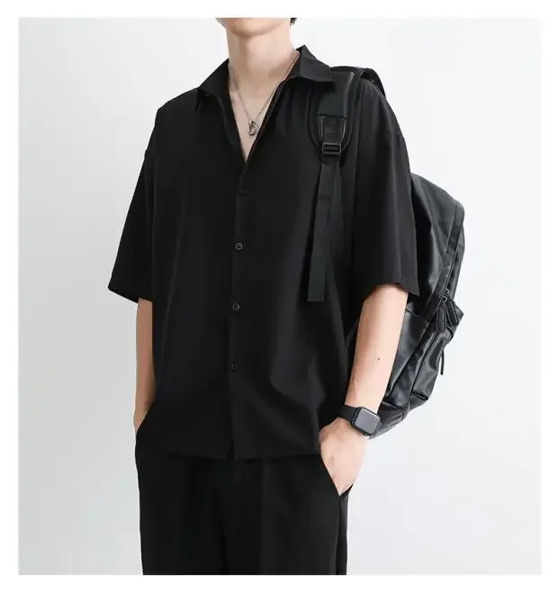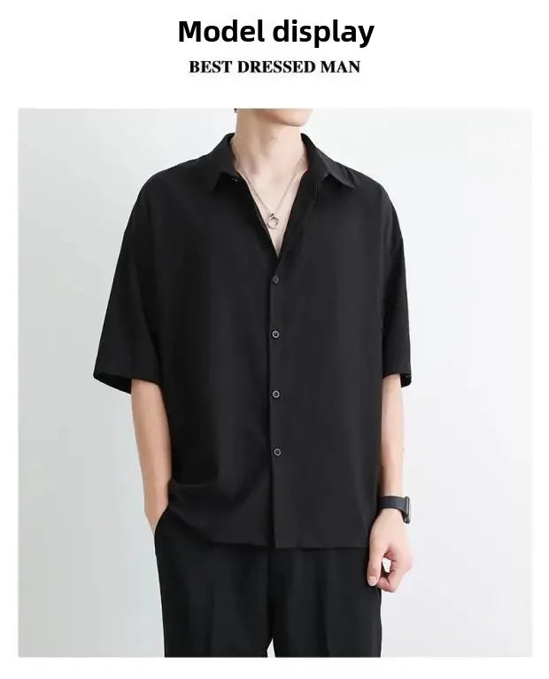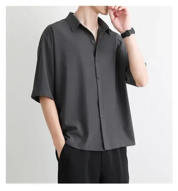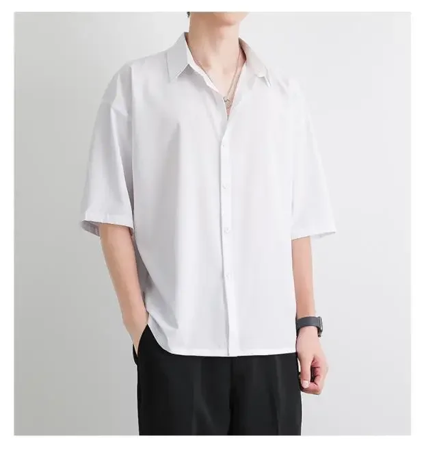 Men's Summer Loose Thin Ice Silk Short Sleeve White Shirt Half Sleeve Open Cardigan Breathable Korean Style Casual Top