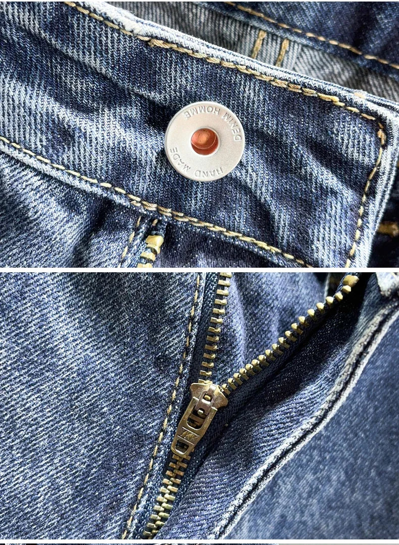 Men's Tapered Jeans Fashion Streetwear Casual Pants Personality Vintage Blue Denim Trousers Hip Hop High Quality Male Clothes