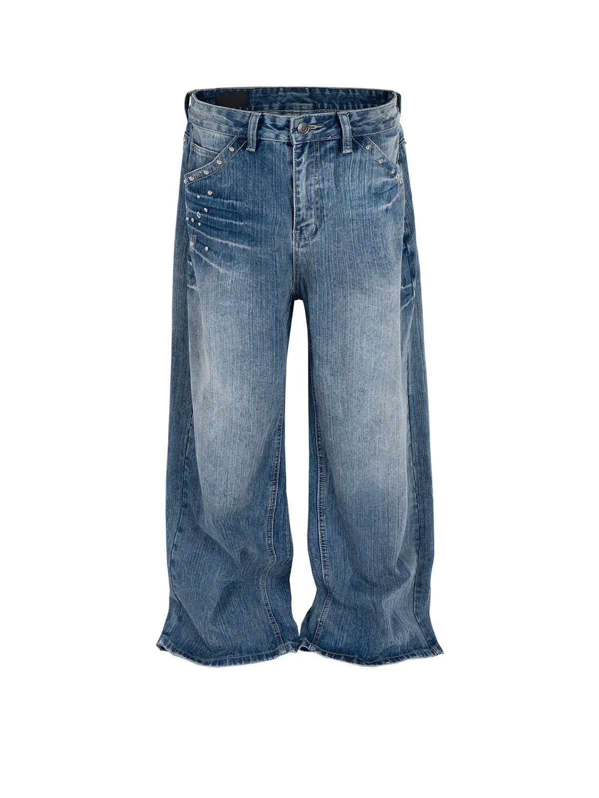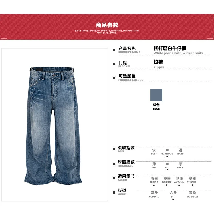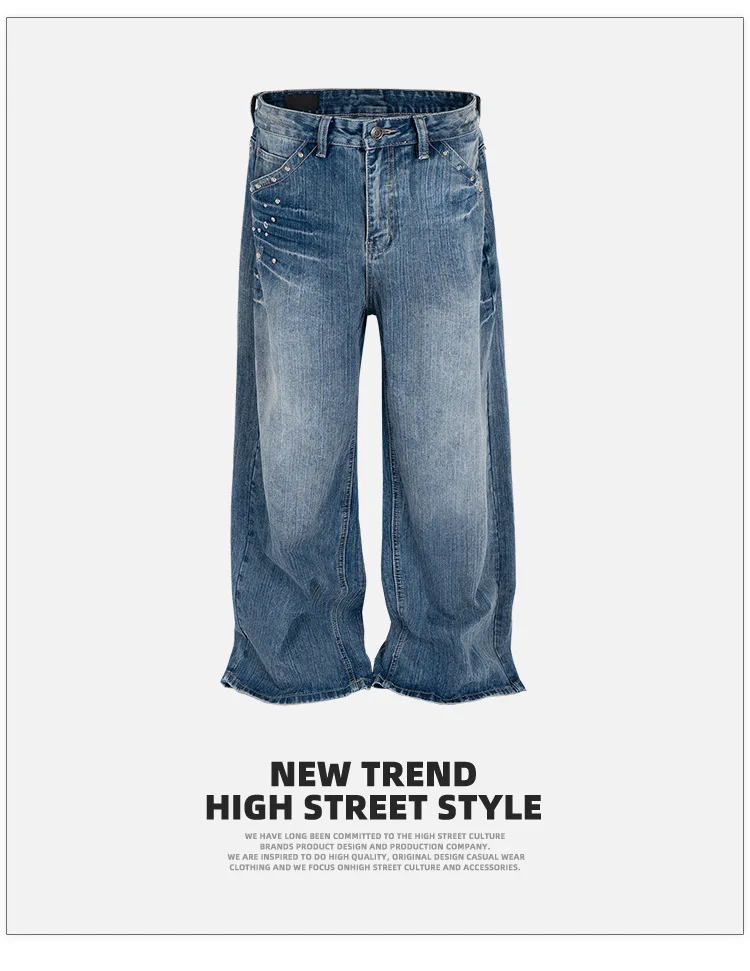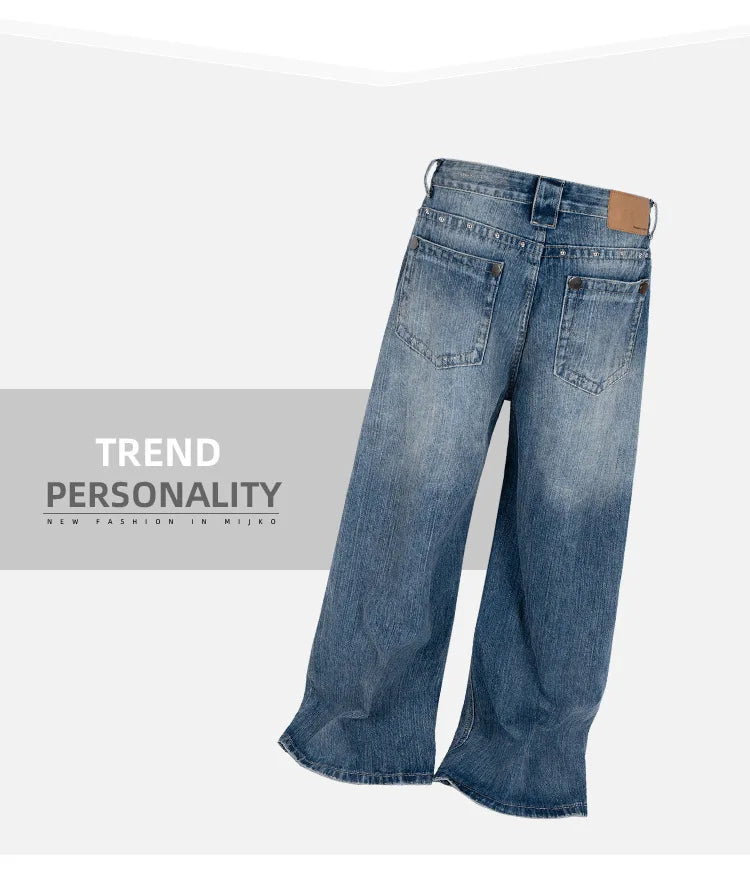 MIJKO Men Women Jeans Washed Fashion Rivet Casual Denim Pants