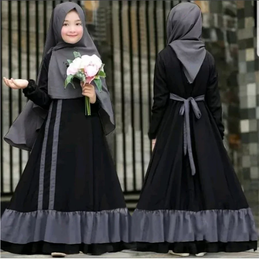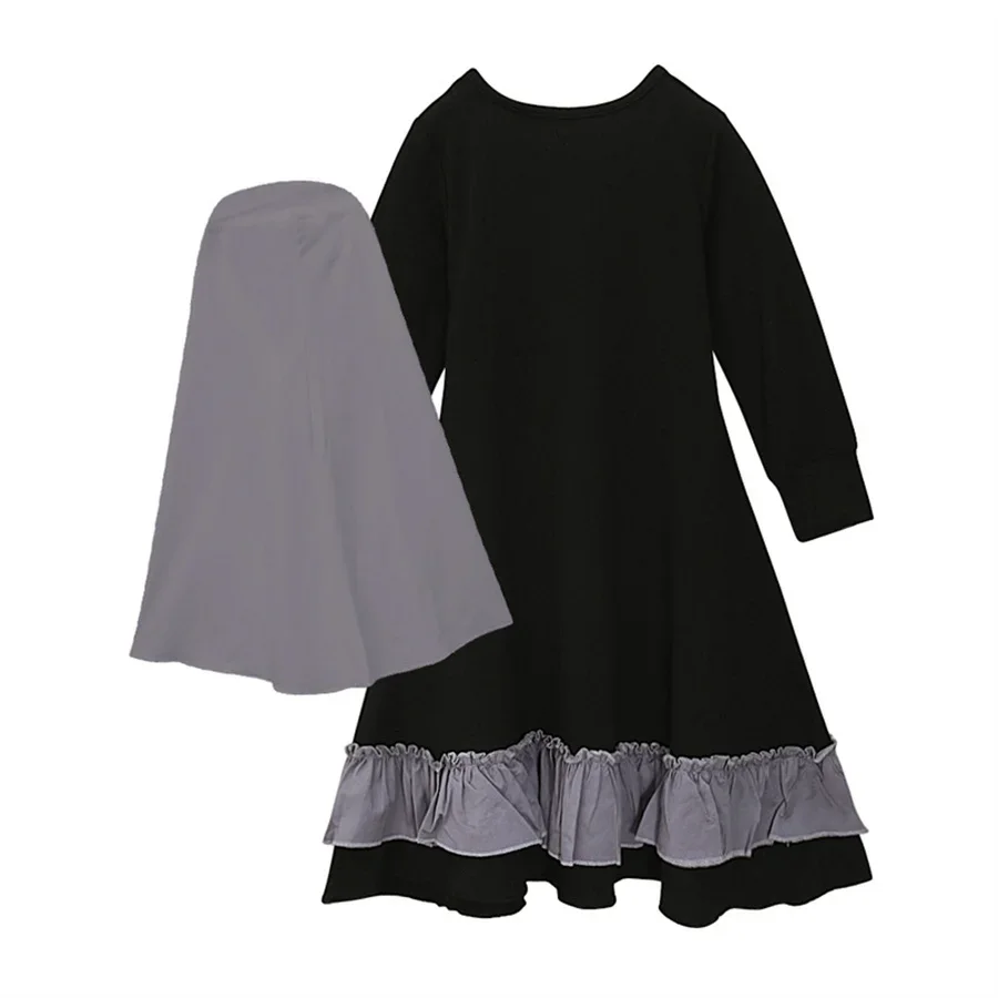 Muslim 2 Pcs Ramadan Sets Children Plain Robe Islam Girls Modest Clothing Kids Hijab Prayer Dress Abaya Dubai Turkey Kaftan Gown